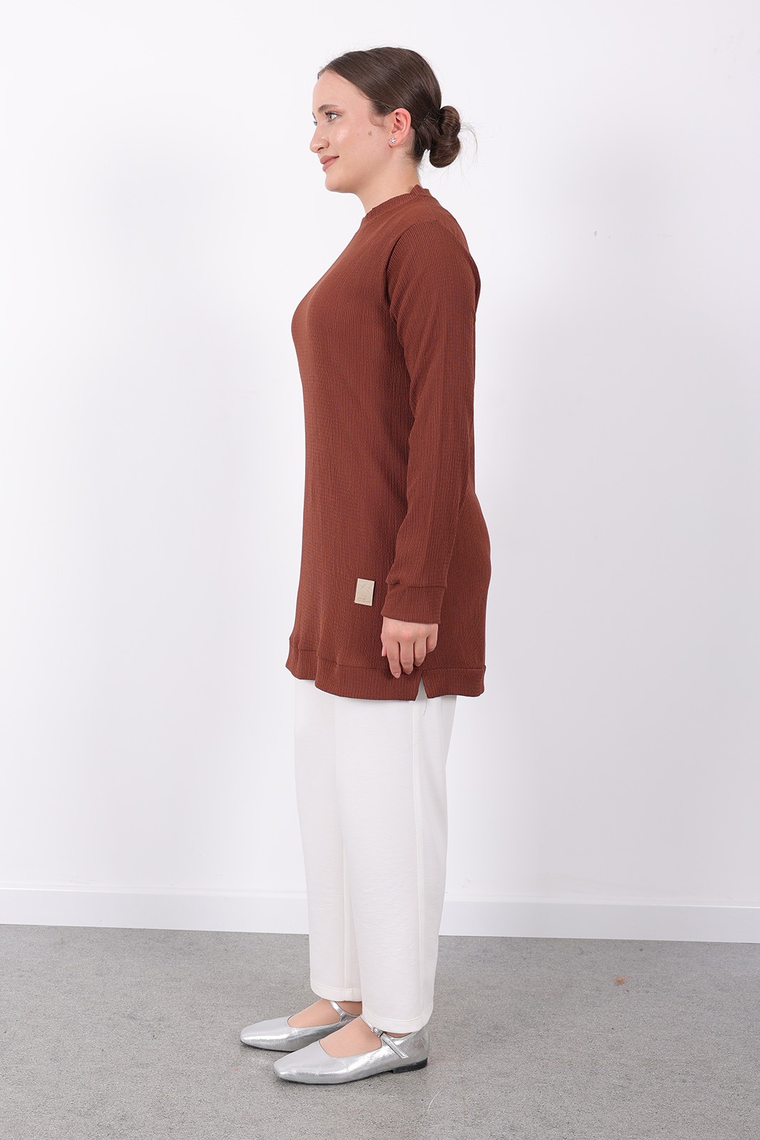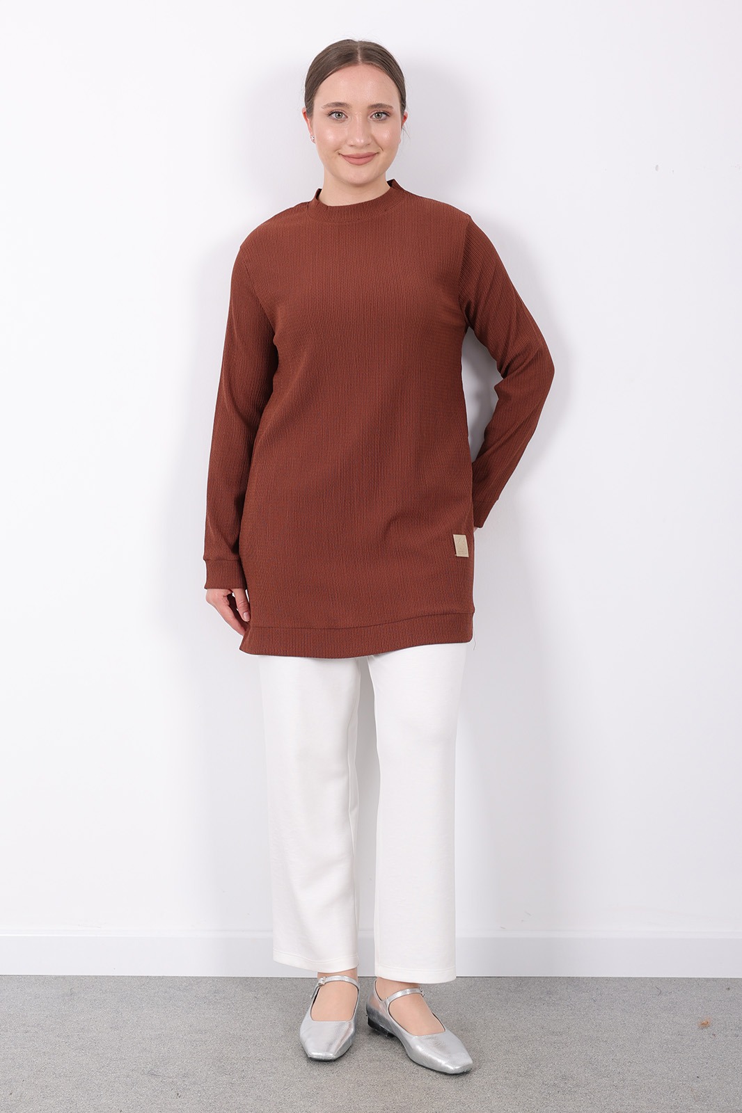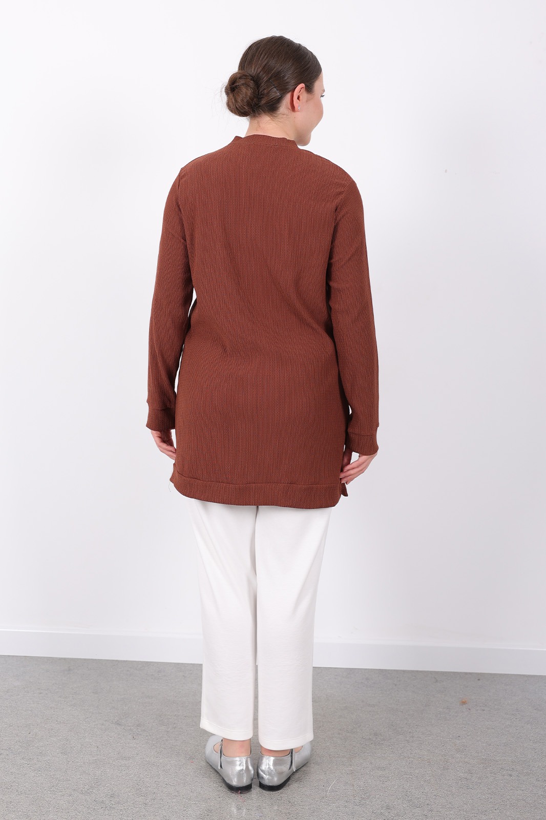 – Kahverengi tonlarındaki bürümcük kumaşı ile hem şıklığı hem de rahatlığı bir arada sunar. – Uzun kollu tasarımı sayesinde mevsim geçişlerinde ideal koruma sağlar. – Dokuma kumaş yapısı, dayanıklılığı artırarak uzun süreli kullanım imkanı tanır. – Kadın / kız kullanıcılar için özel olarak tasarlanmış slim siluetiyle modern bir görünüm kazandırır. – Sürdürülebilirlik detayına önem vermeyen bu tunik, günlük kullanıma uygunluk gösterir. – Türkiye menşeli olmasıyla yerel üretim avantajını yansıtırken viskon materyali konforlu bir deneyim sunar. – Bisiklet yakası sayesinde sade ve zarif bir stil oluştururken, düz deseniyle kolayca kombinlenebilirliği arttırır. – Standart boy uzunluğu her vücut tipine uyum sağlayacak şekilde dizayn edilmiştir. – Cepsiz yapısıyla minimalist tasarım anlayışını benimserken regular kalıp rahat hareket etme olanağı tanır. – Yetişkin yaş grubuna hitap eden bu tunik, casual ortamlarda günlük giyimin vazgeçilmez parçasıdır. – Type 1 yıkama talimatına sahip olması bakımının kolay ve pratik olmasını sağlar. – Kutusuz ambalaj seçeneğiyle ekstra maliyetten tasarruf ederken aynı zamanda çevre dostu bir tercih yapmış olursunuz. – XL bedeni geniş kesimiyle rahatlıkla üzerinize oturacak şekilde üretilmiştir.