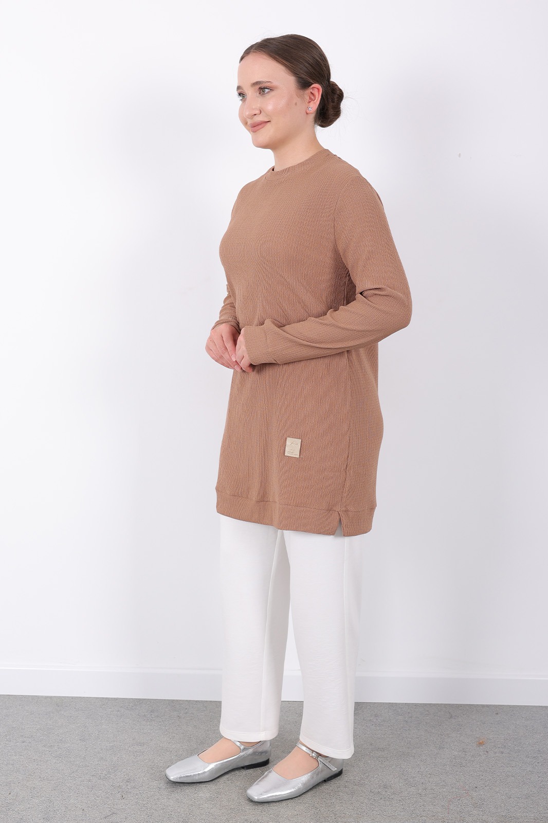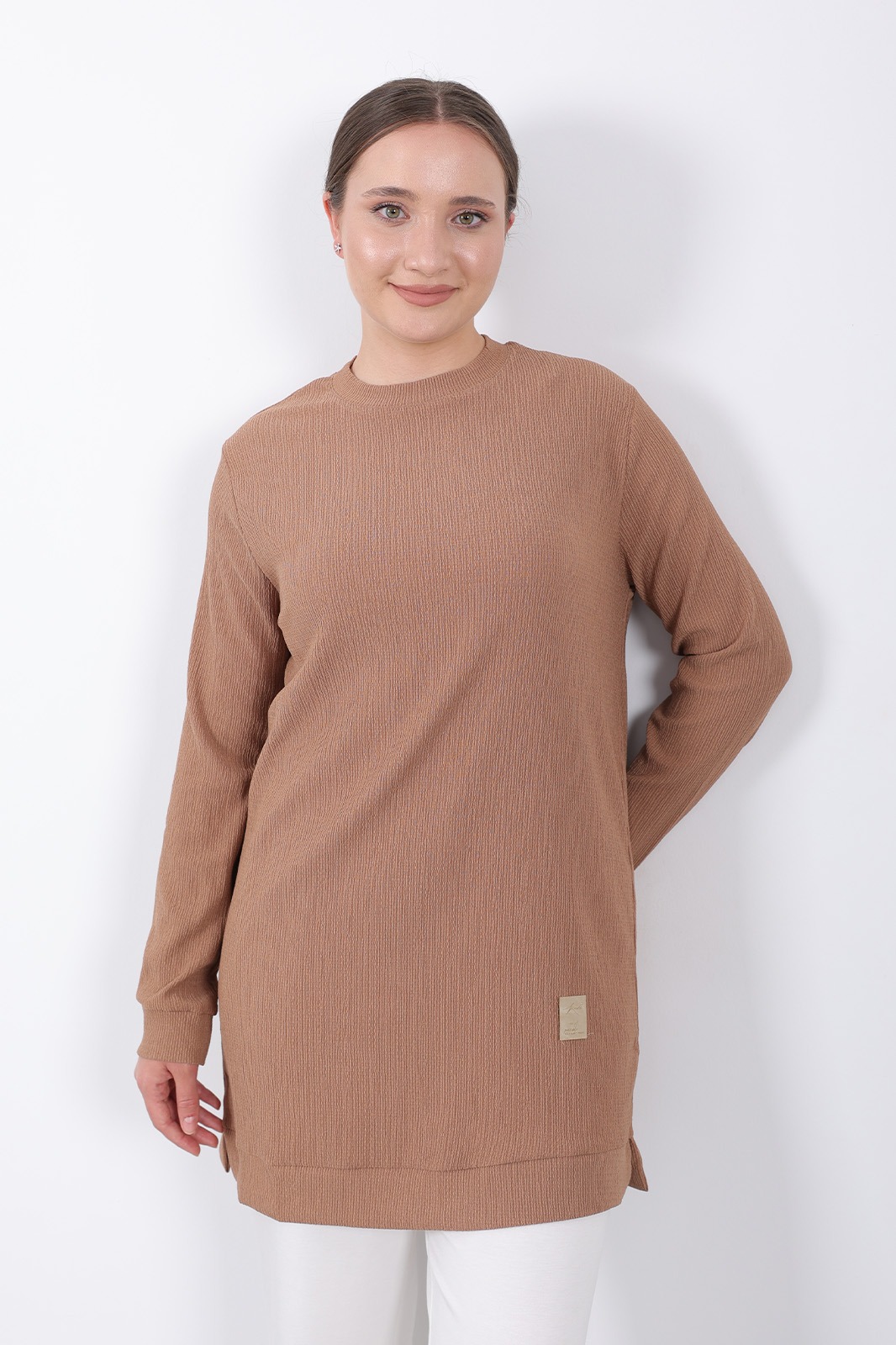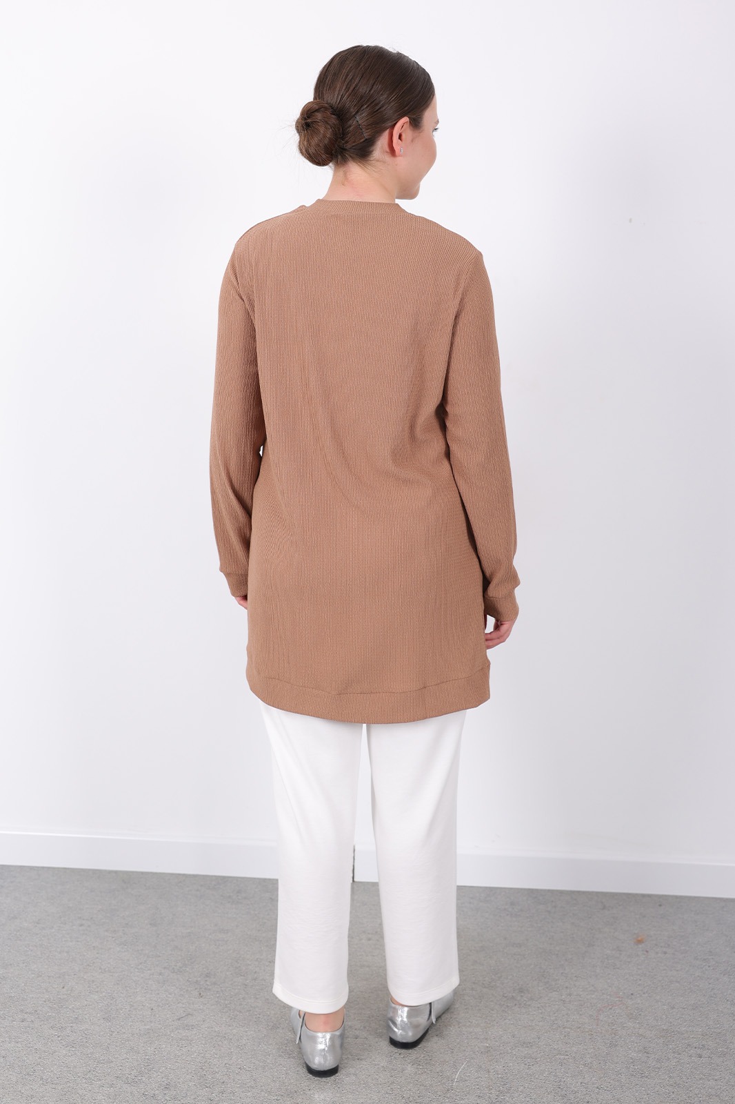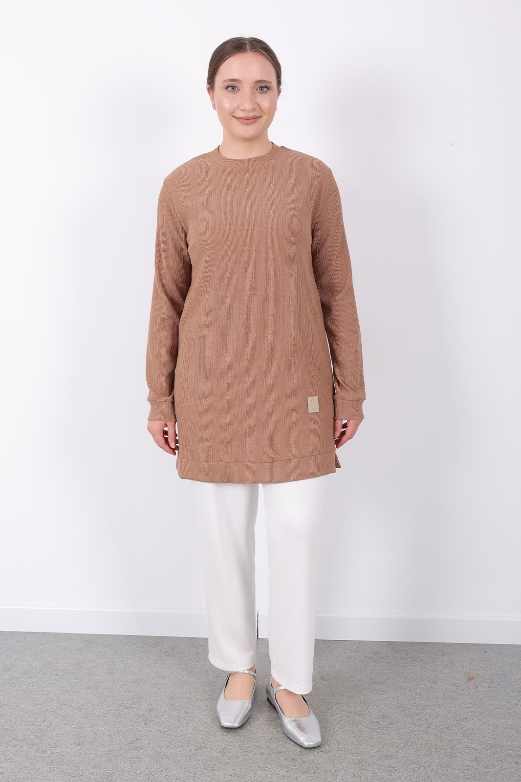 – Kahverengi tonlarındaki bürümcük kumaşı ile hem şıklığı hem de rahatlığı bir arada sunar. – Uzun kollu tasarımı sayesinde mevsim geçişlerinde ideal koruma sağlar. – Dokuma kumaş yapısı, dayanıklılığı artırarak uzun süreli kullanım imkanı tanır. – Kadın / kız kullanıcılar için özel olarak tasarlanmış slim siluetiyle modern bir görünüm kazandırır. – Sürdürülebilirlik detayına önem vermeyen bu tunik, günlük kullanıma uygunluk gösterir. – Türkiye menşeli olmasıyla yerel üretim avantajını yansıtırken viskon materyali konforlu bir deneyim sunar. – Bisiklet yakası sayesinde sade ve zarif bir stil oluştururken, düz deseniyle kolayca kombinlenebilirliği arttırır. – Standart boy uzunluğu her vücut tipine uyum sağlayacak şekilde dizayn edilmiştir. – Cepsiz yapısıyla minimalist tasarım anlayışını benimserken regular kalıp rahat hareket etme olanağı tanır. – Yetişkin yaş grubuna hitap eden bu tunik, casual ortamlarda günlük giyimin vazgeçilmez parçasıdır. – Type 1 yıkama talimatına sahip olması bakımının kolay ve pratik olmasını sağlar. – Kutusuz ambalaj seçeneğiyle ekstra maliyetten tasarruf ederken aynı zamanda çevre dostu bir tercih yapmış olursunuz. – XL bedeni geniş kesimiyle rahatlıkla üzerinize oturacak şekilde üretilmiştir.