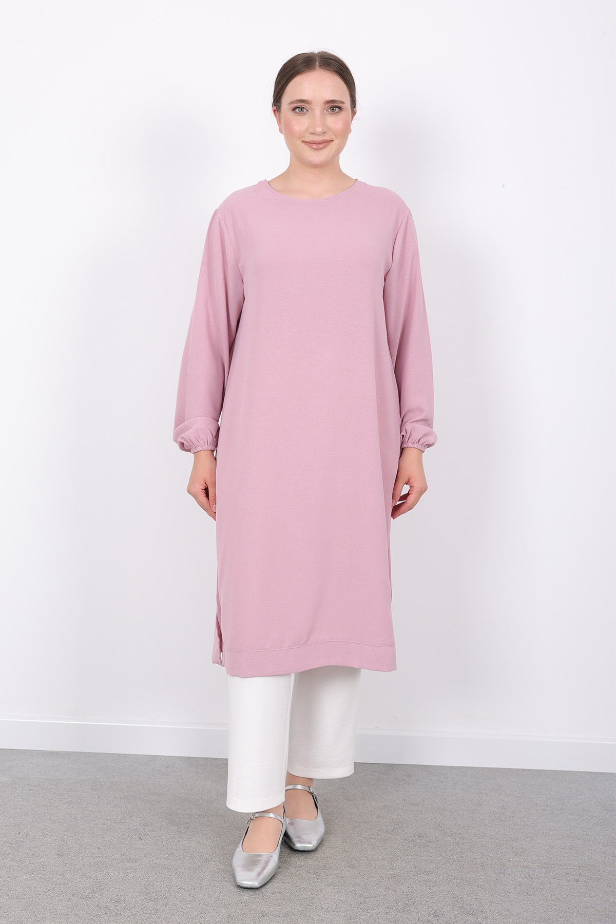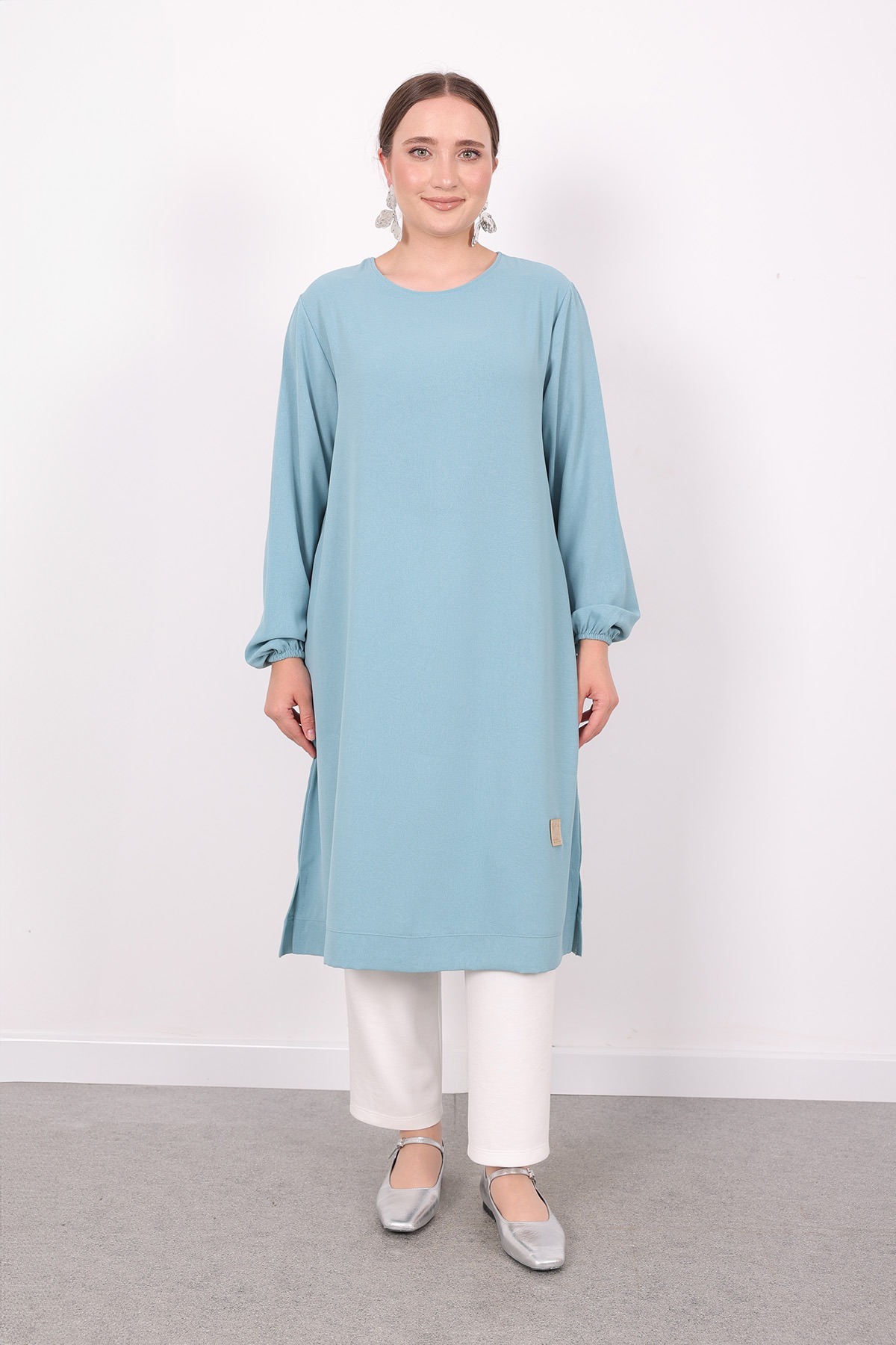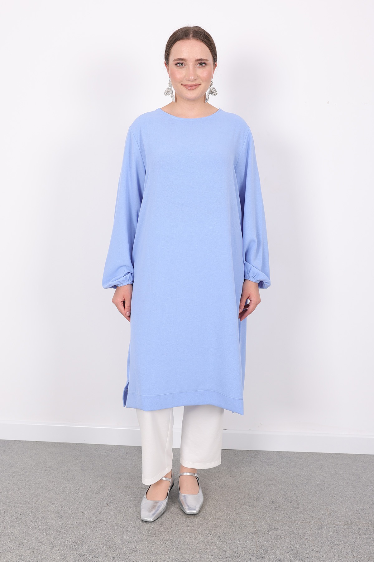 Kadın Günlük Rahat Şık Kraş Ayrobin Kolu Lastikli Uzun Spor Tunik – Açık mavi rengiyle yaz aylarının vazgeçilmezi, rahatlıkla kombinlenebilecek şık bir tunik.; – Aerobin dokuma tipi sayesinde hafif ve nefes alabilen yapısıyla gün boyu konfor sunar.; – Regular kalıp ile vücut hatlarınıza uyum sağlayarak günlük kullanım için idealdir.; – Türkiye’de üretilmiş olup yerel üretim avantajını yansıtır.; – Uzun kollu tasarımı ile mevsim geçişlerinde de tercih edebileceğiniz pratik bir seçenektir.; – Düz kesimi sayesinde sade ve zamansız bir görünüm elde edersiniz.; – Bisiklet yakası ile modern ve minimalist bir stil oluştururken, standart boy uzunluğu her türlü alt giyimle uyumluluğu artırır.; – Cepsiz yapısıyla minimalist detaylara sahip olan bu tunik, minimalist tarzınızı tamamlar.; – Viskon materyali yumuşak dokusuyla cildinize nazikçe dokunurken dayanıklılığından ödün vermez.; – Yetişkin yaş grubuna hitap eden geniş beden skalasıyla herkes için uygundur.; – Kadın / kız cinsiyetine özel olarak tasarlanmıştır; feminen çizgilere sahiptir ancak erkek kullanıcılar tarafından da rahatlıkla tercih edilebilir.; – Sürdürülebilirlik detayına önem vermeyen bu ürün, çevreye duyarlı tüketiciler için ideal değildir.; – Type 1 yıkama talimatına uygun şekilde kolayca temizlenebilir; böylece uzun süre ilk günkü gibi kalmasını sağlar.; – Kutusuz ambalaj seçeneğiyle ekstra atık oluşumunu önleyerek çevre dostu bir tercih sunar.