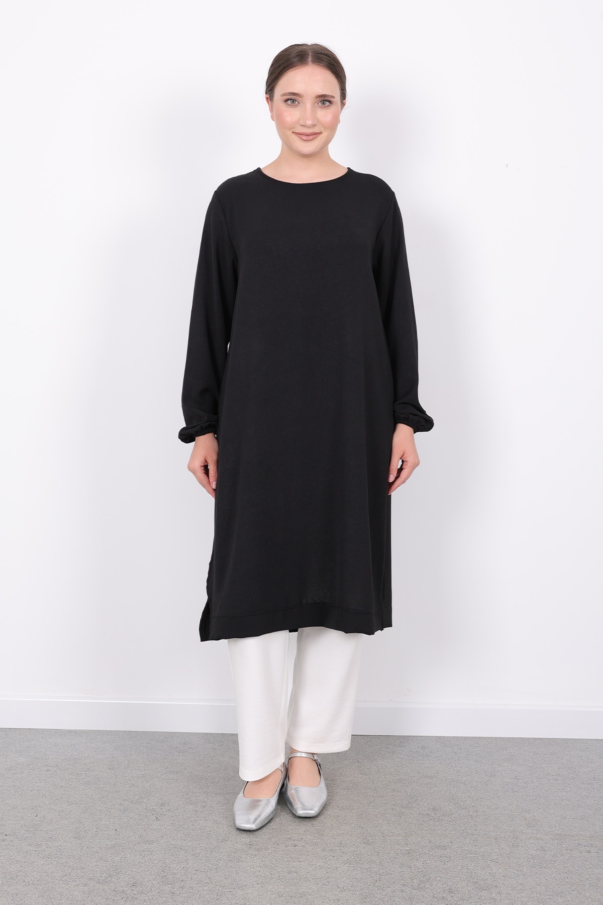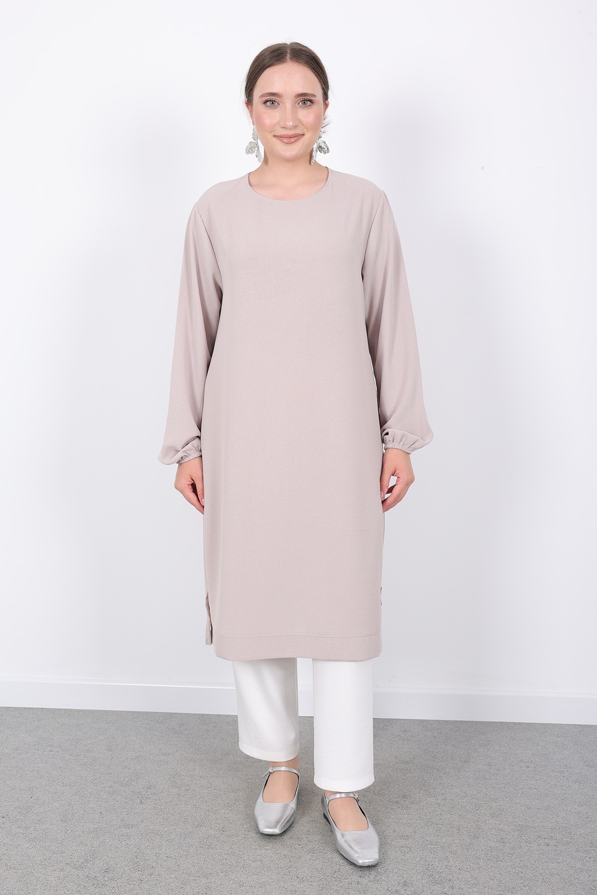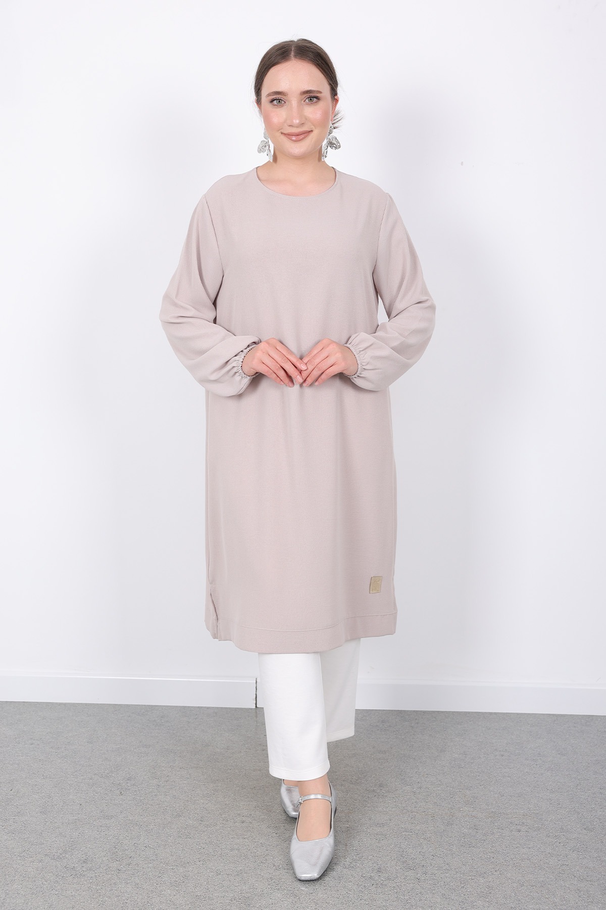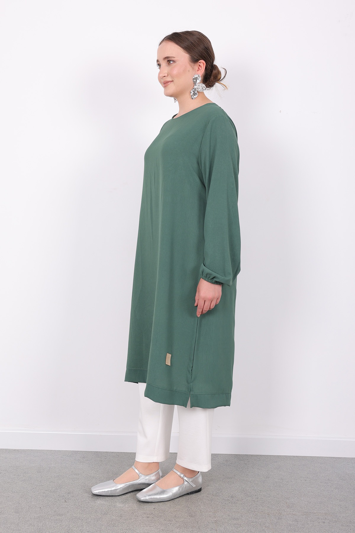 Kadın Günlük Rahat Şık Kraş Ayrobin Kolu Lastikli Uzun Spor Tunik – Açık mavi rengiyle yaz aylarının vazgeçilmezi, rahatlıkla kombinlenebilecek şık bir tunik.; – Aerobin dokuma tipi sayesinde hafif ve nefes alabilen yapısıyla gün boyu konfor sunar.; – Regular kalıp ile vücut hatlarınıza uyum sağlayarak günlük kullanım için idealdir.; – Türkiye’de üretilmiş olup yerel üretim avantajını yansıtır.; – Uzun kollu tasarımı ile mevsim geçişlerinde de tercih edebileceğiniz pratik bir seçenektir.; – Düz kesimi sayesinde sade ve zamansız bir görünüm elde edersiniz.; – Bisiklet yakası ile modern ve minimalist bir stil oluştururken, standart boy uzunluğu her türlü alt giyimle uyumluluğu artırır.; – Cepsiz yapısıyla minimalist detaylara sahip olan bu tunik, minimalist tarzınızı tamamlar.; – Viskon materyali yumuşak dokusuyla cildinize nazikçe dokunurken dayanıklılığından ödün vermez.; – Yetişkin yaş grubuna hitap eden geniş beden skalasıyla herkes için uygundur.; – Kadın / kız cinsiyetine özel olarak tasarlanmıştır; feminen çizgilere sahiptir ancak erkek kullanıcılar tarafından da rahatlıkla tercih edilebilir.; – Sürdürülebilirlik detayına önem vermeyen bu ürün, çevreye duyarlı tüketiciler için ideal değildir.; – Type 1 yıkama talimatına uygun şekilde kolayca temizlenebilir; böylece uzun süre ilk günkü gibi kalmasını sağlar.; – Kutusuz ambalaj seçeneğiyle ekstra atık oluşumunu önleyerek çevre dostu bir tercih sunar.