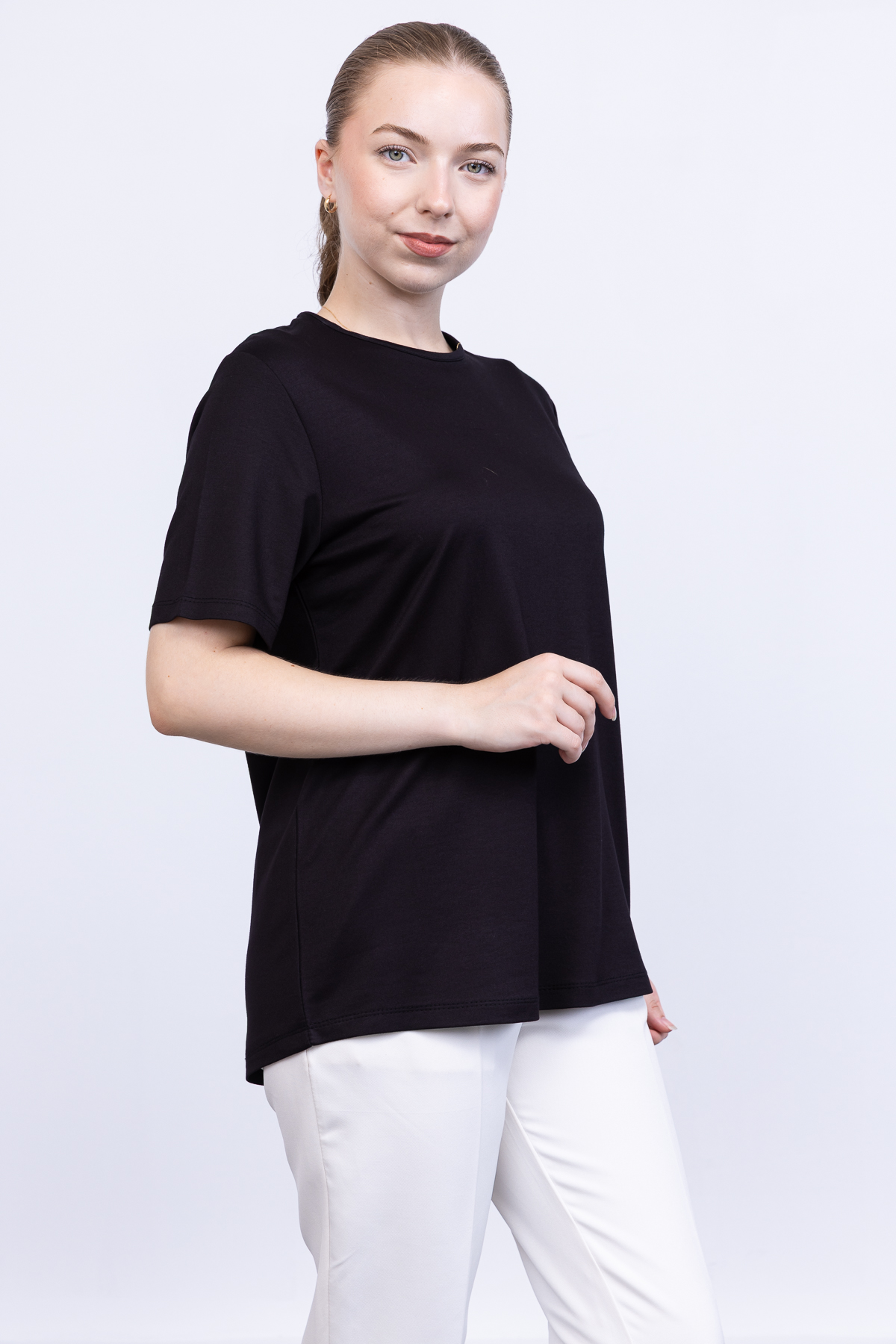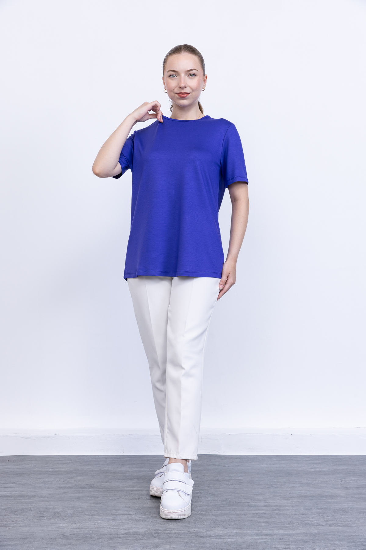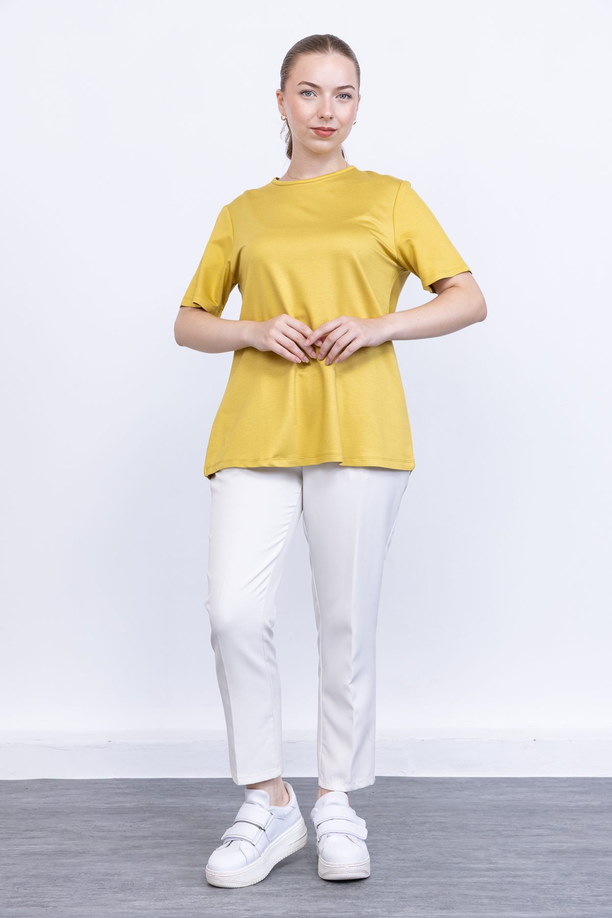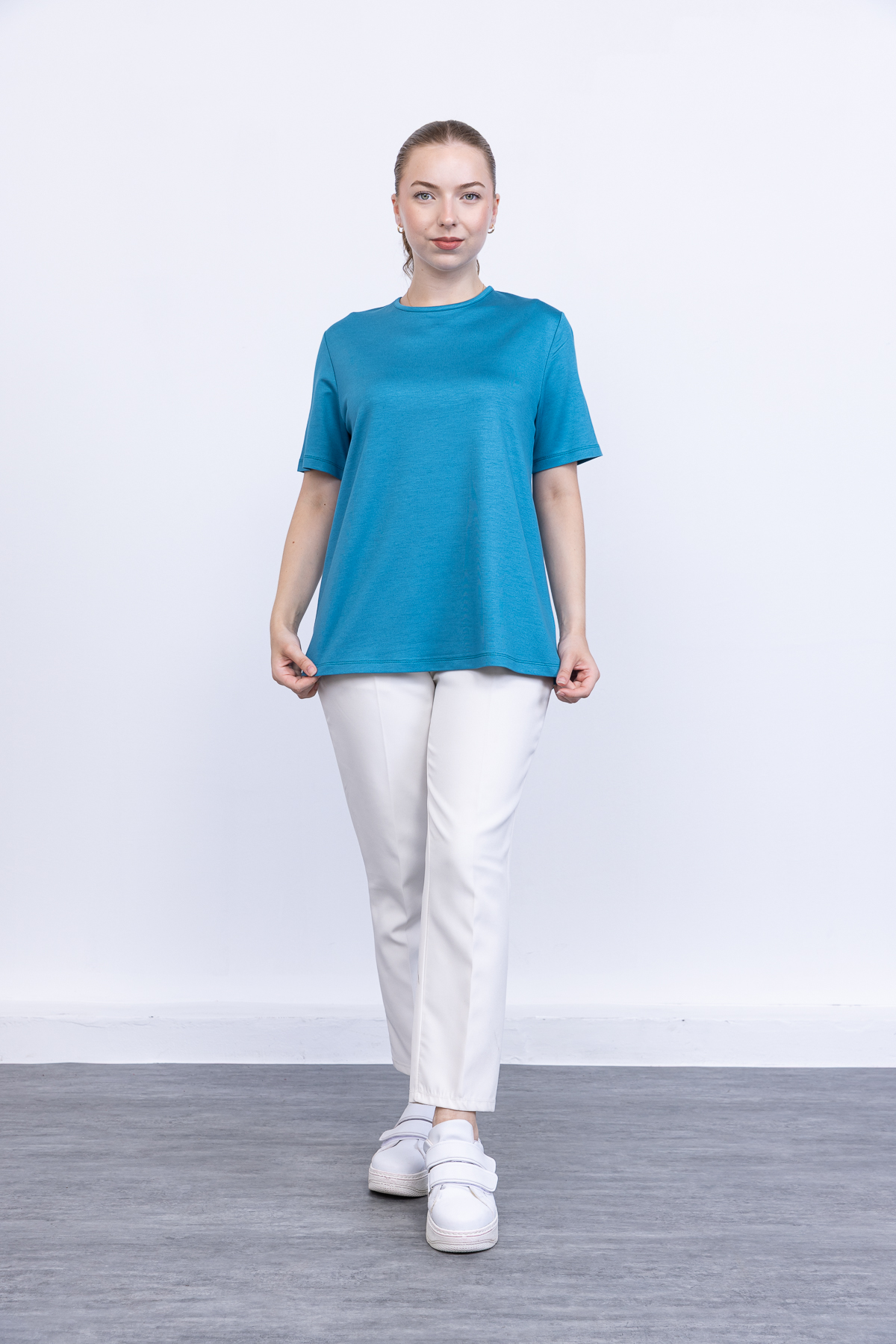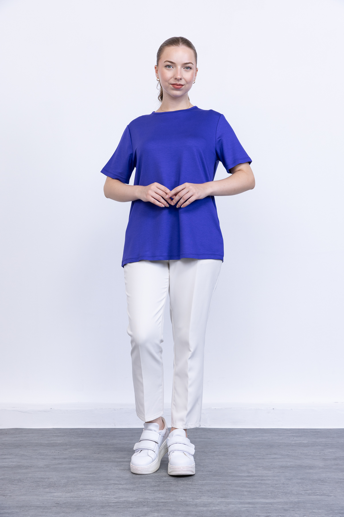 Kristal Likralı Kısa Kollu Bisiklet Yaka Rahat Kalıp Penye T-shirt,Bluz,İçlik