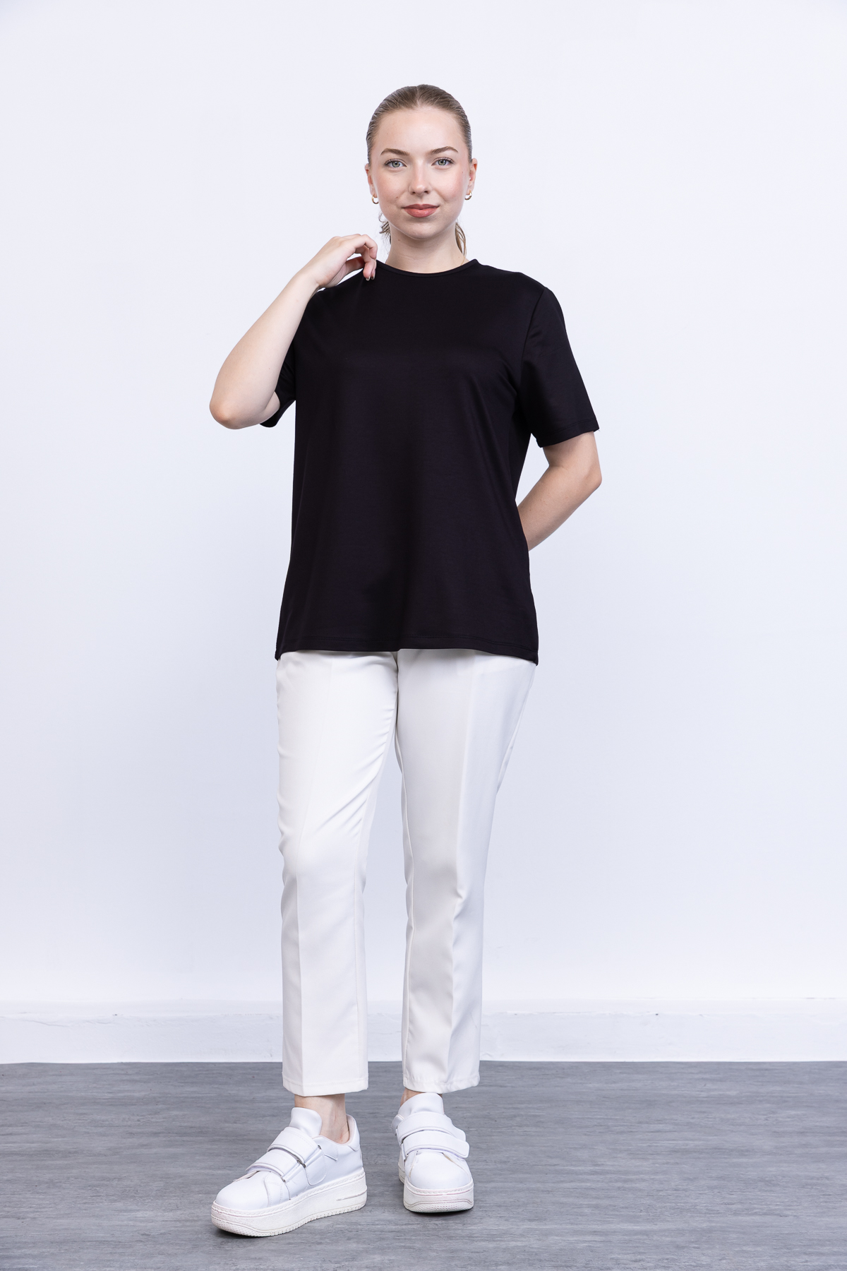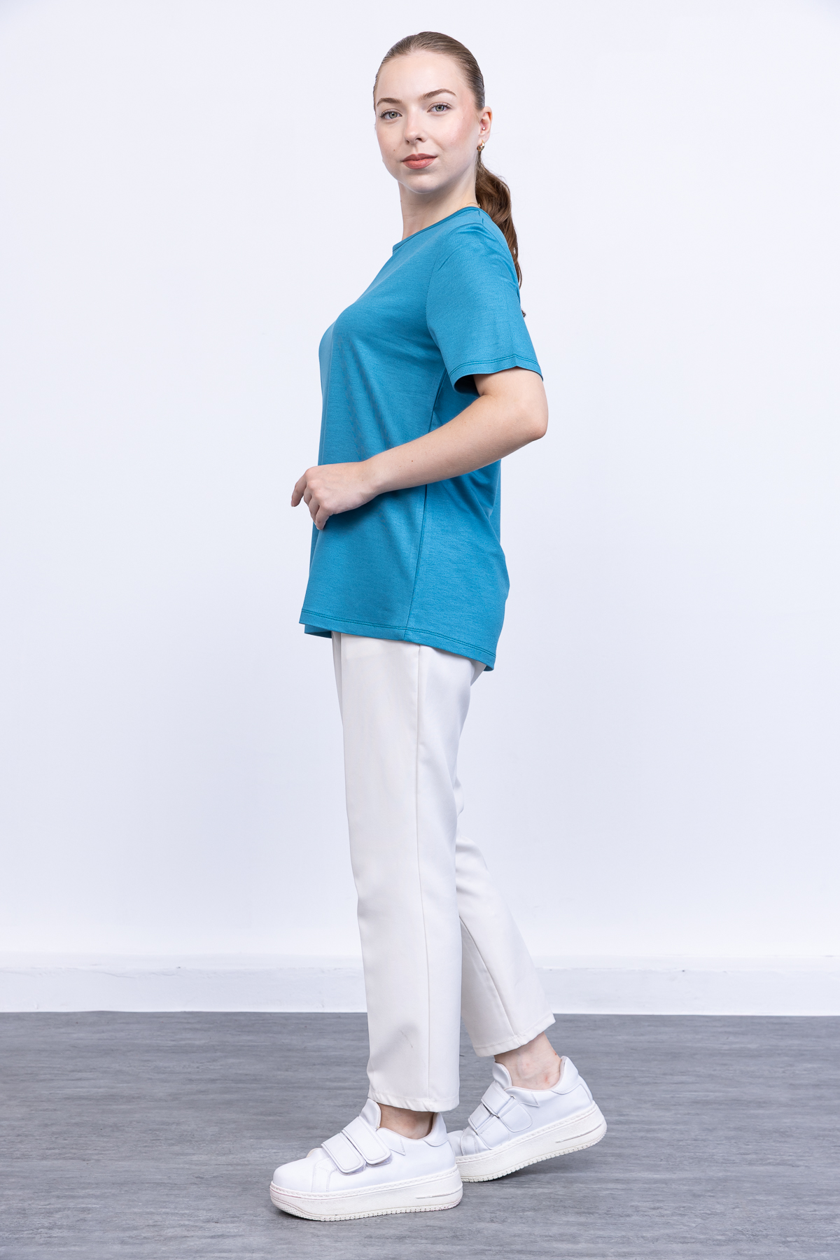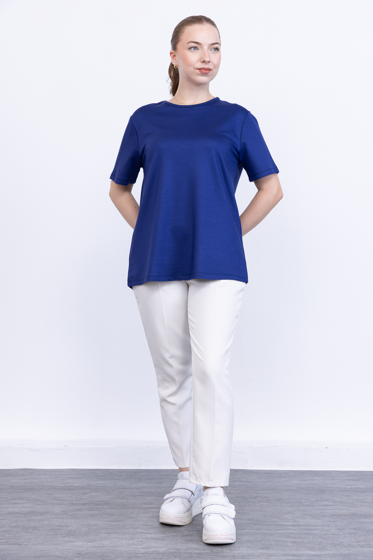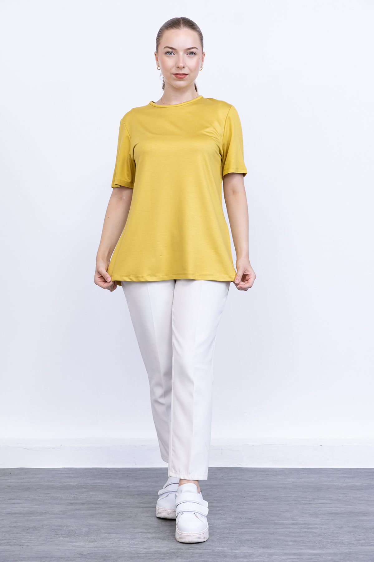 Kristal Likralı Kısa Kollu Bisiklet Yaka Rahat Kalıp Penye T-shirt,Bluz,İçlik