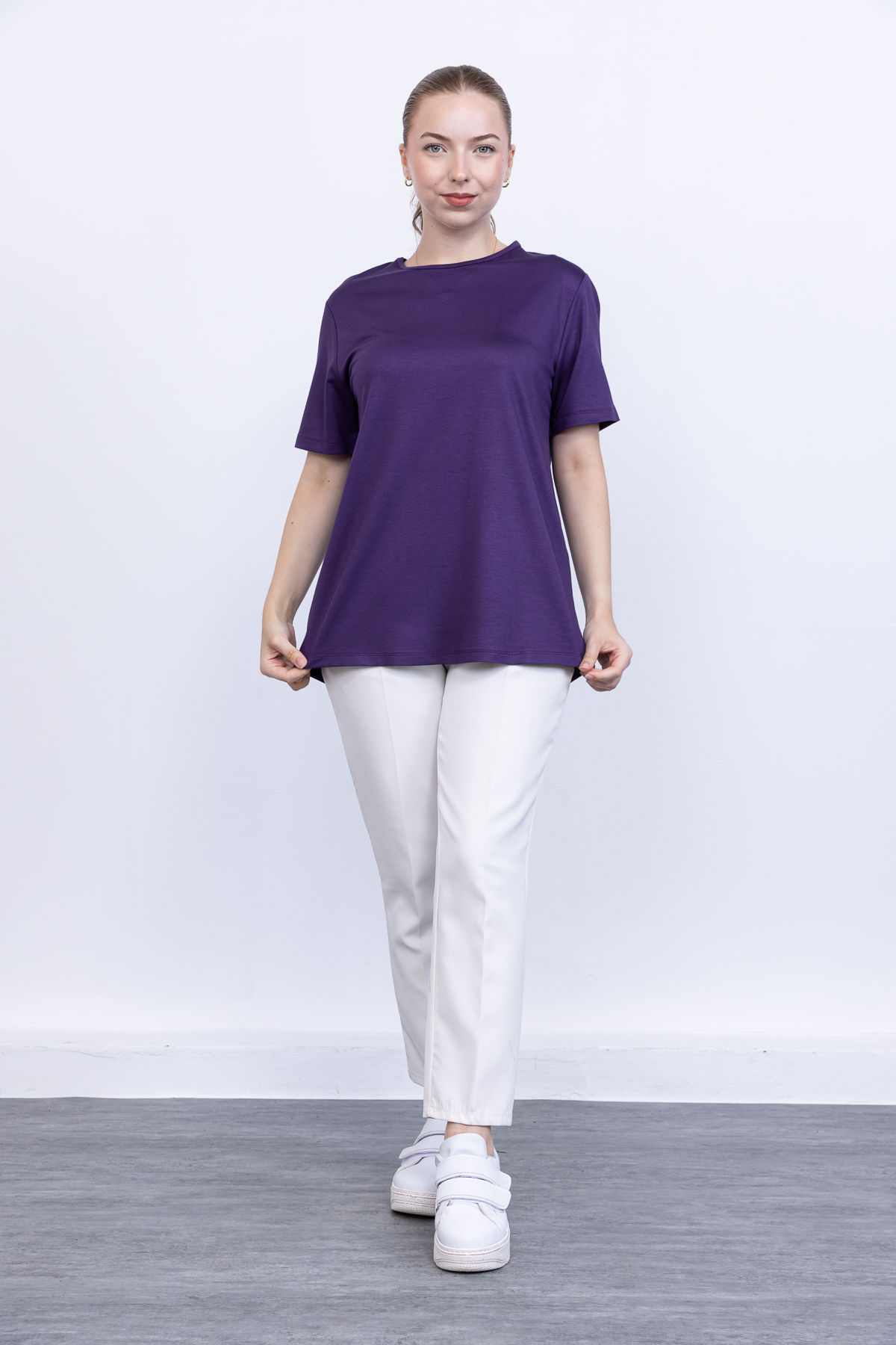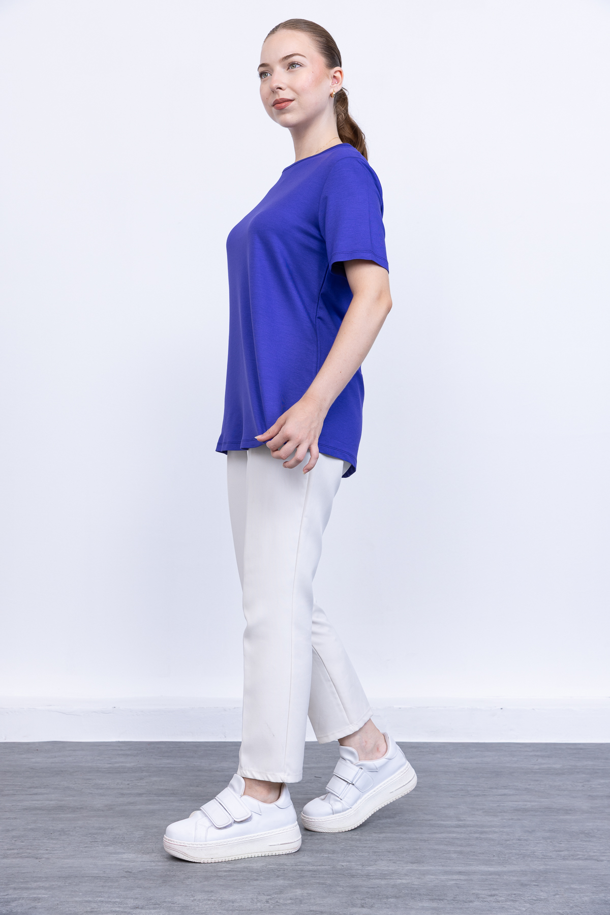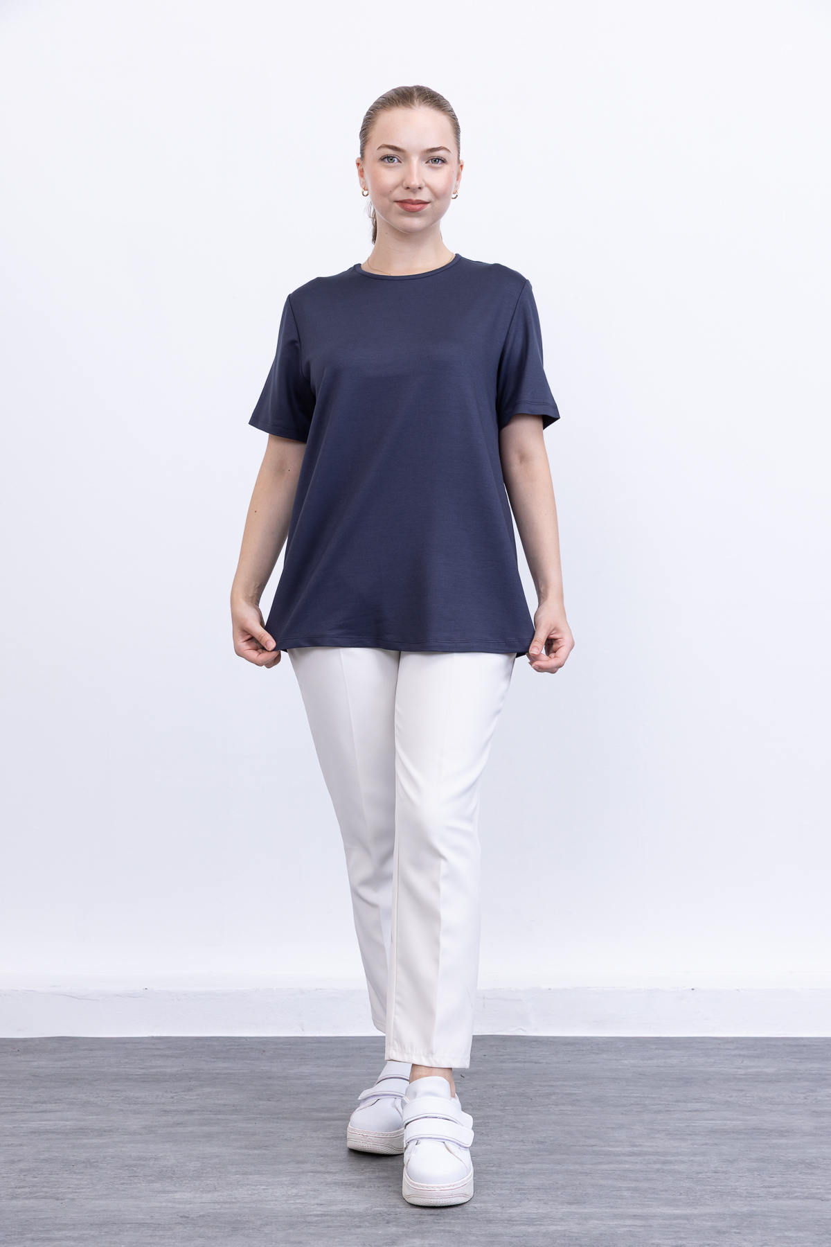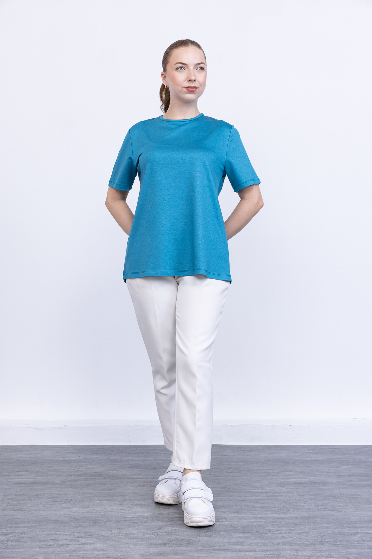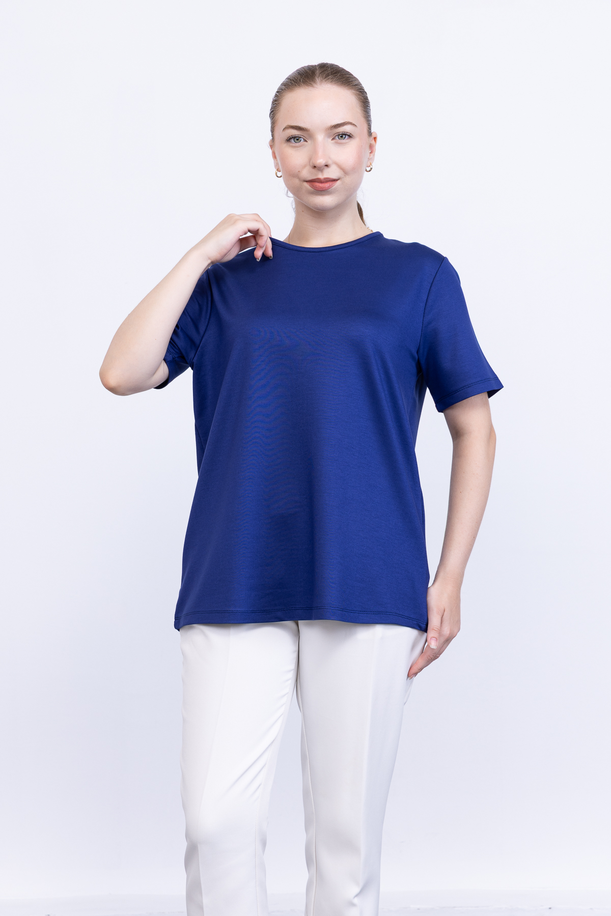 Kristal Likralı Kısa Kollu Bisiklet Yaka Rahat Kalıp Penye T-shirt,Bluz,İçlik