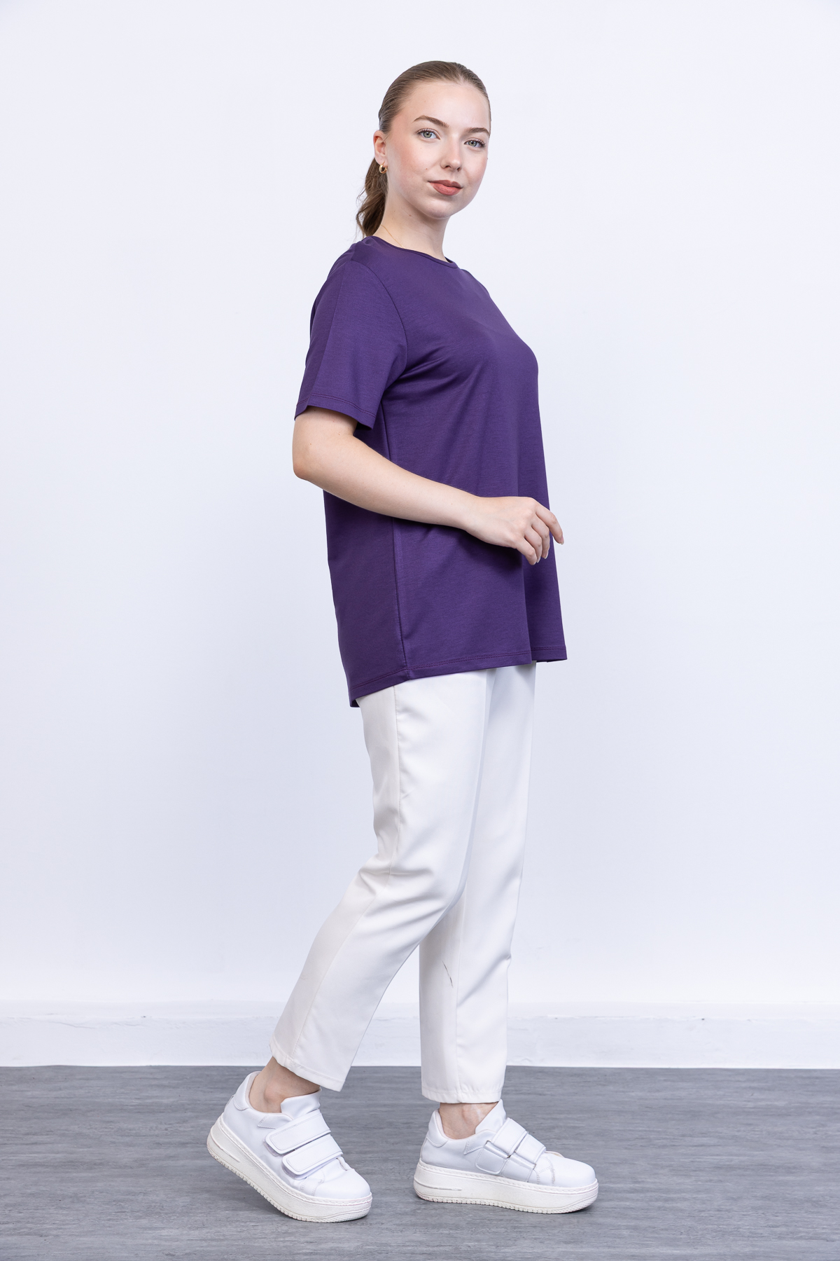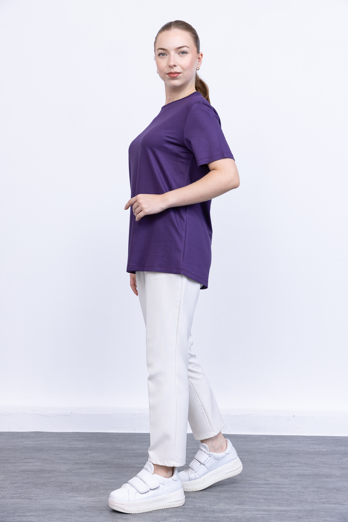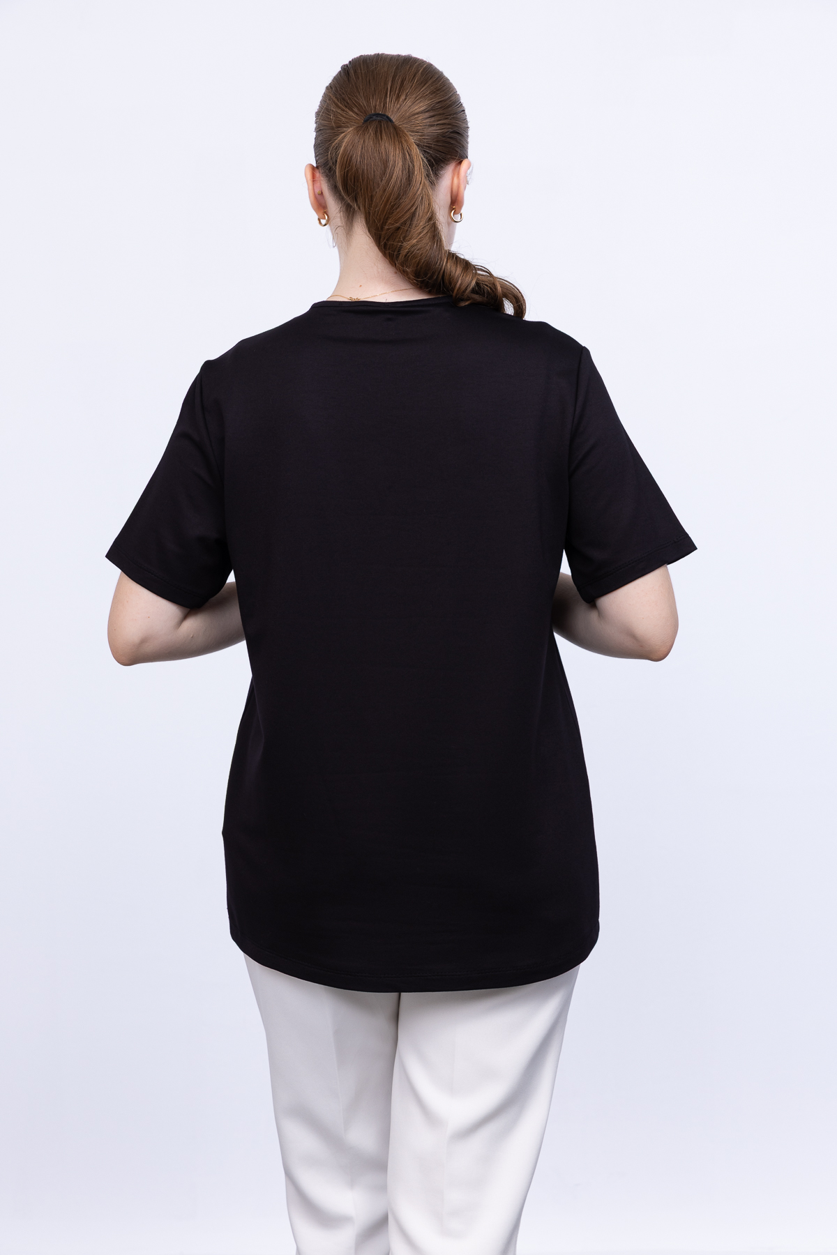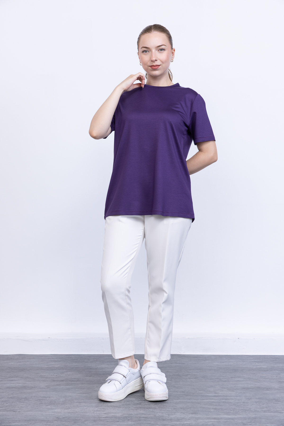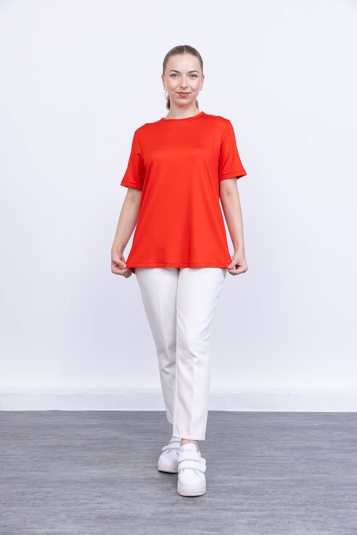 Kristal Likralı Kısa Kollu Bisiklet Yaka Rahat Kalıp Penye T-shirt,Bluz,İçlik