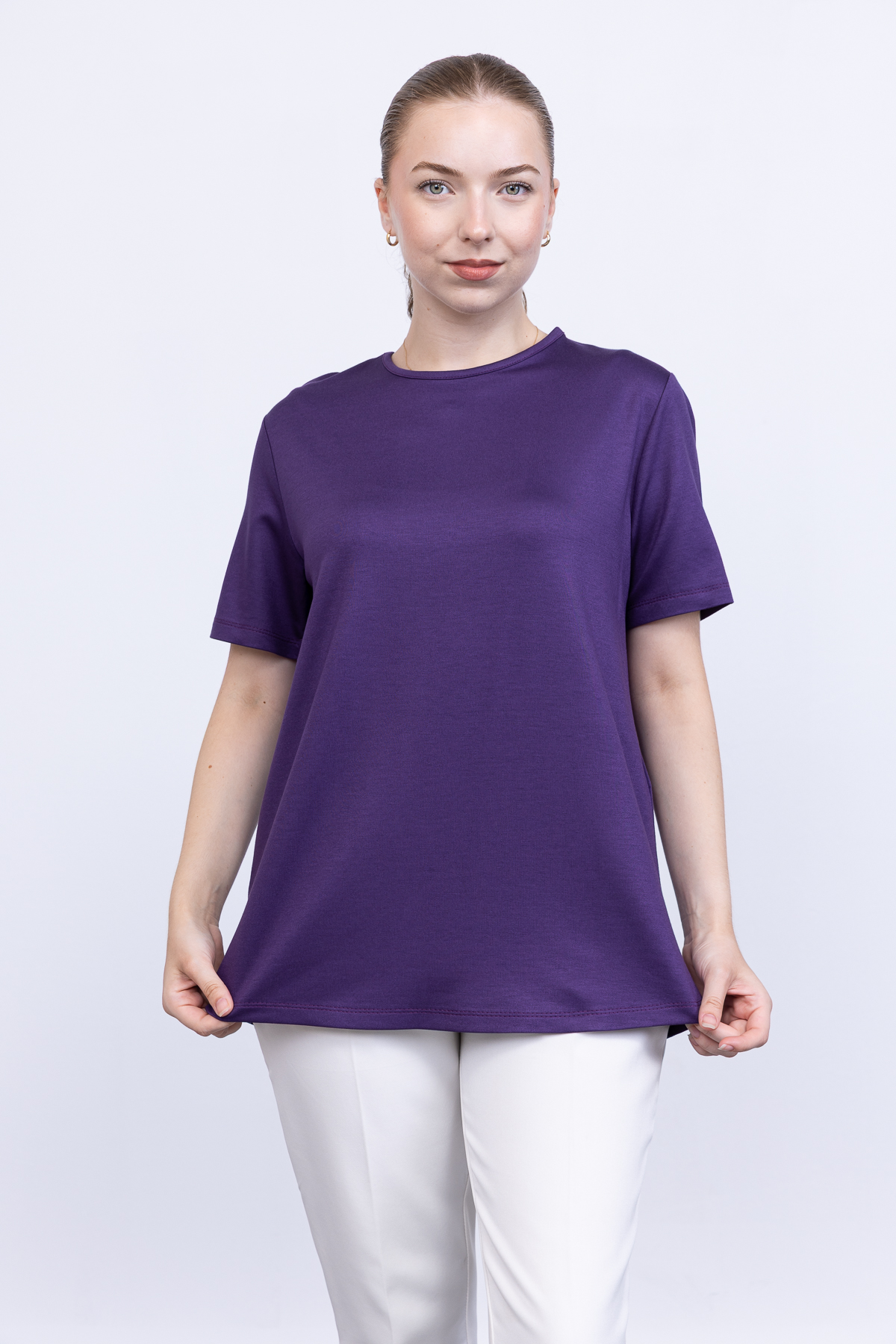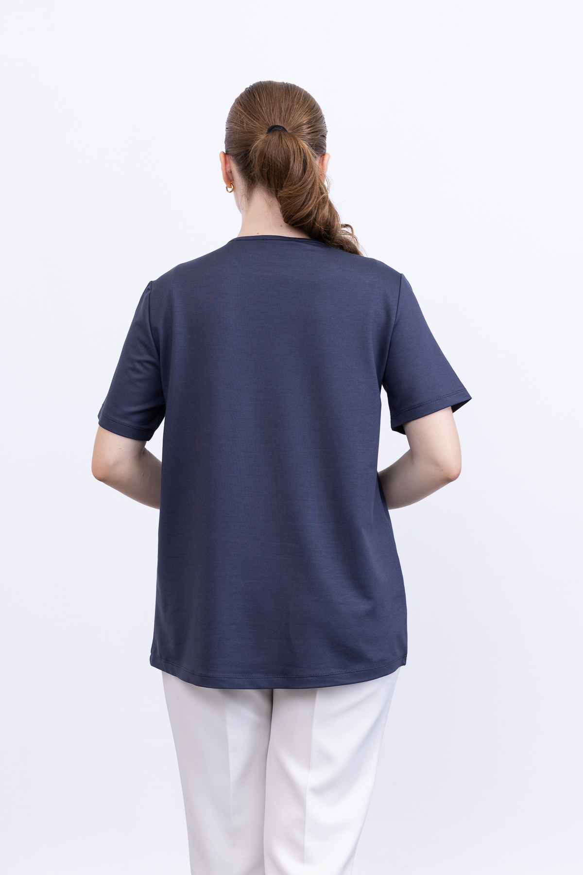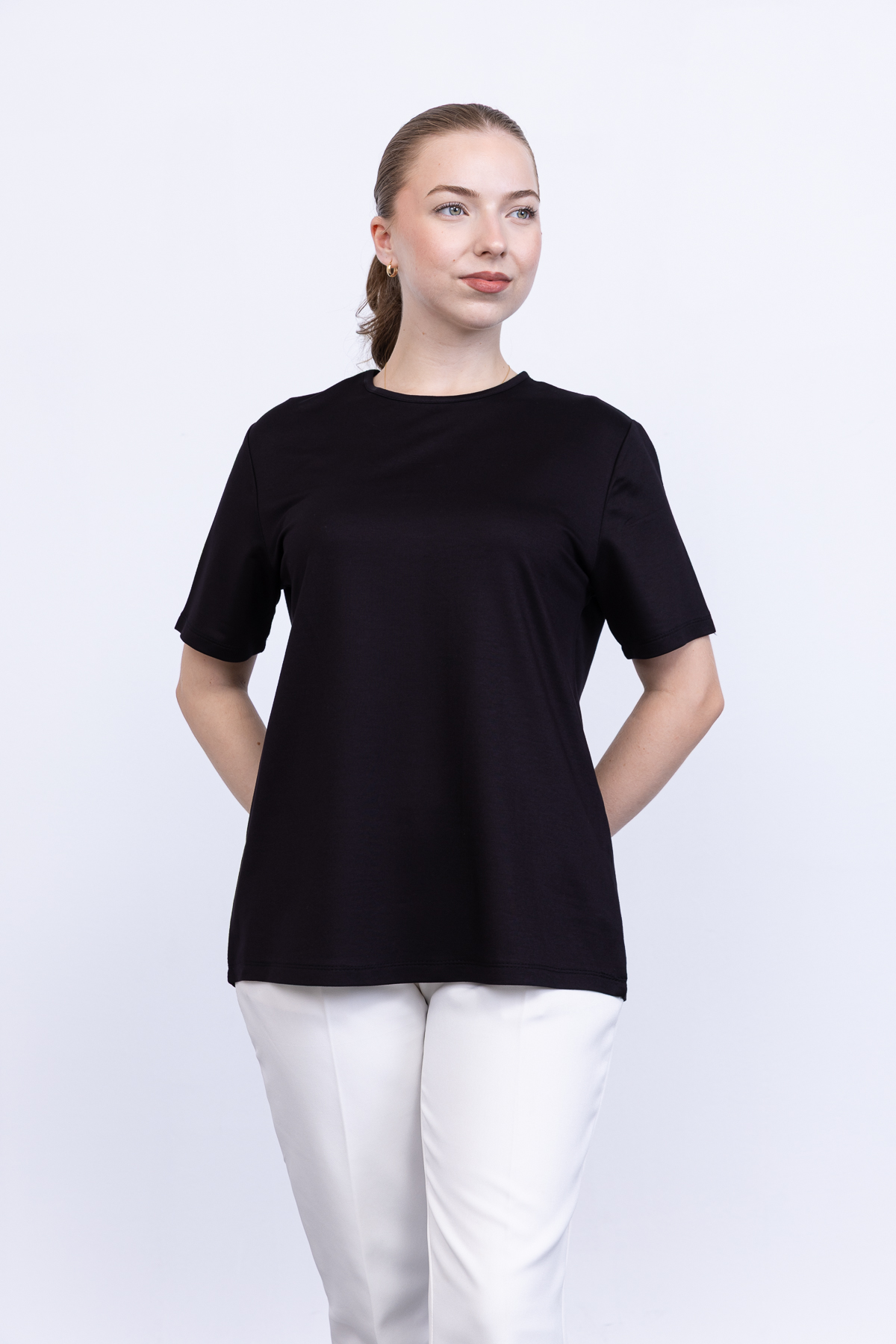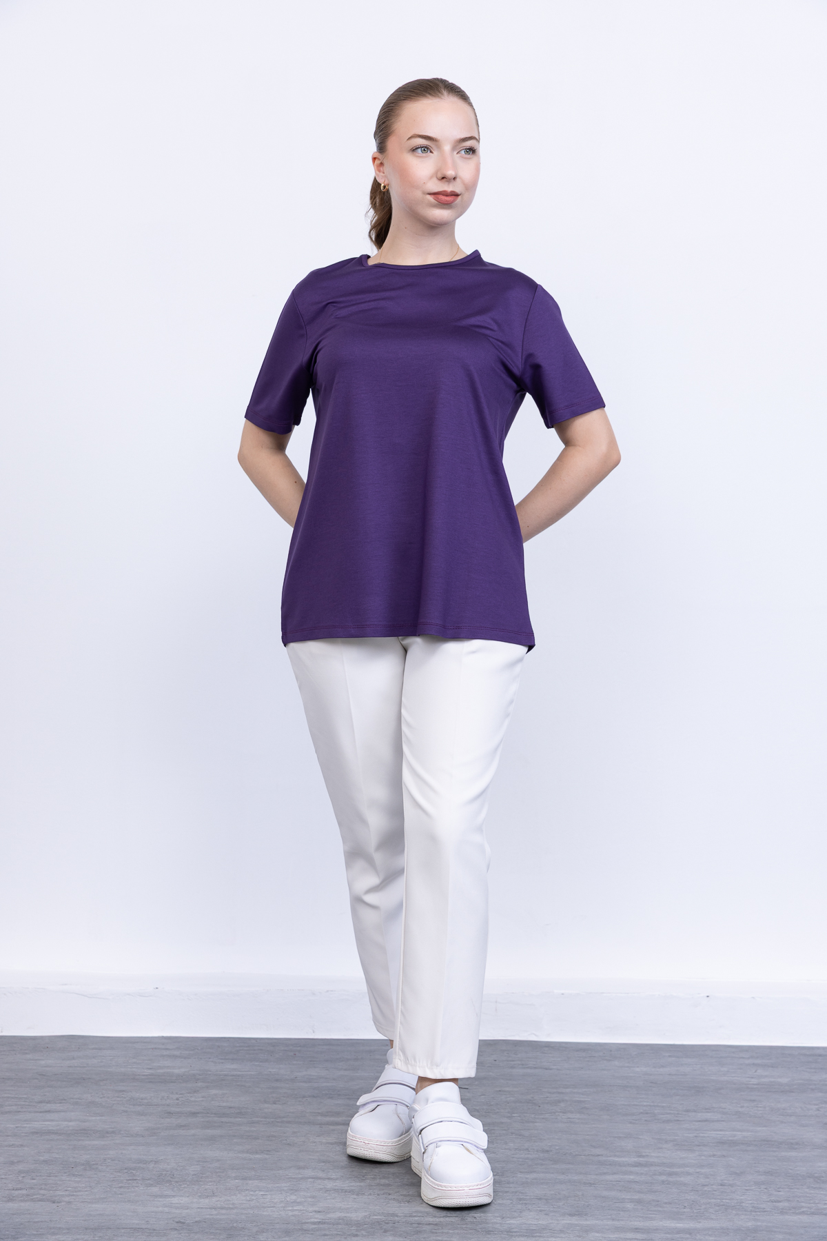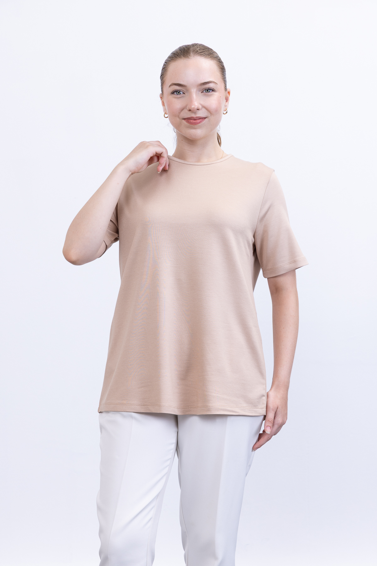Kristal Likralı Kısa Kollu Bisiklet Yaka Rahat Kalıp Penye T-shirt,Bluz,İçlik