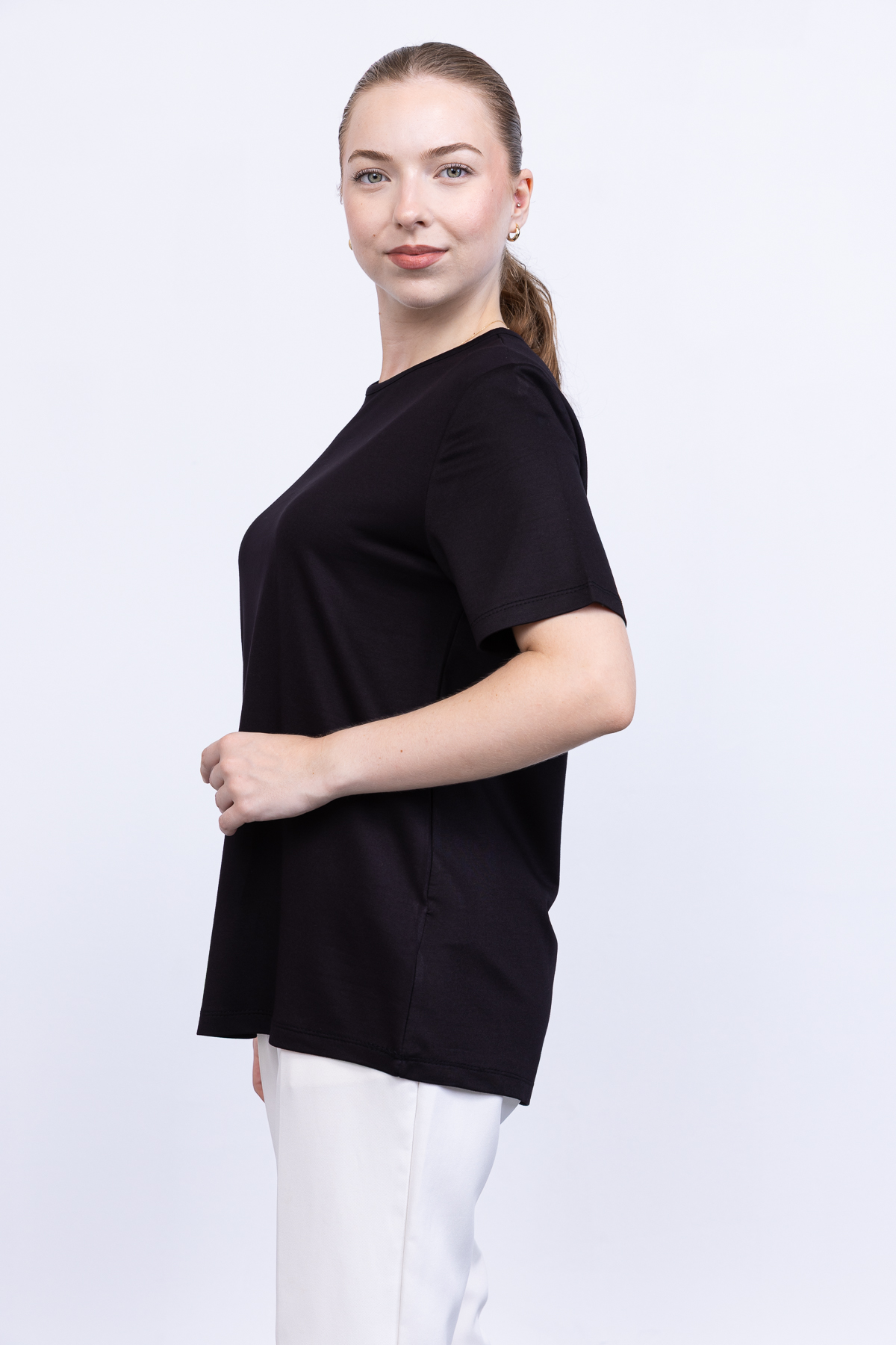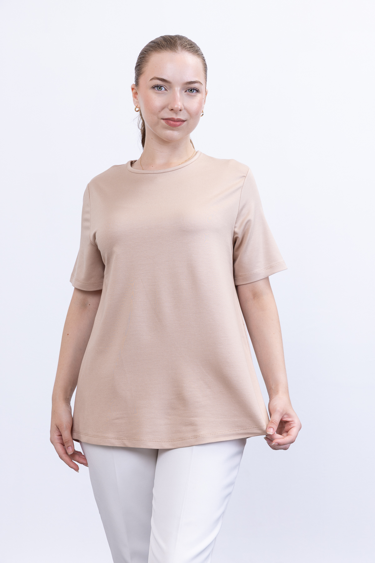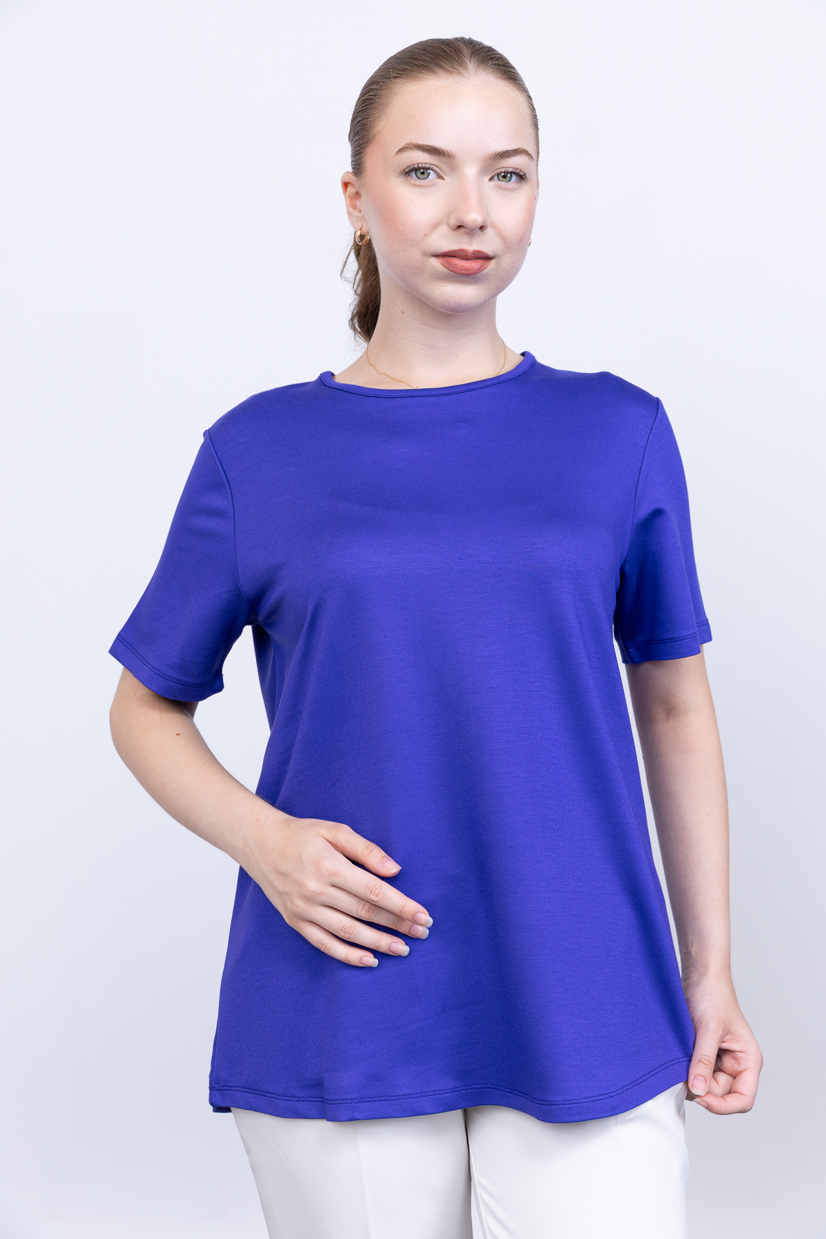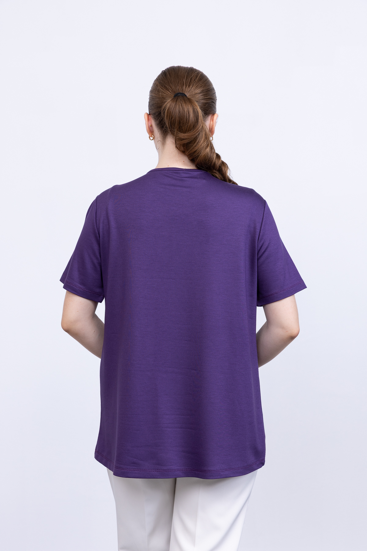 Kristal Likralı Kısa Kollu Bisiklet Yaka Rahat Kalıp Penye T-shirt,Bluz,İçlik