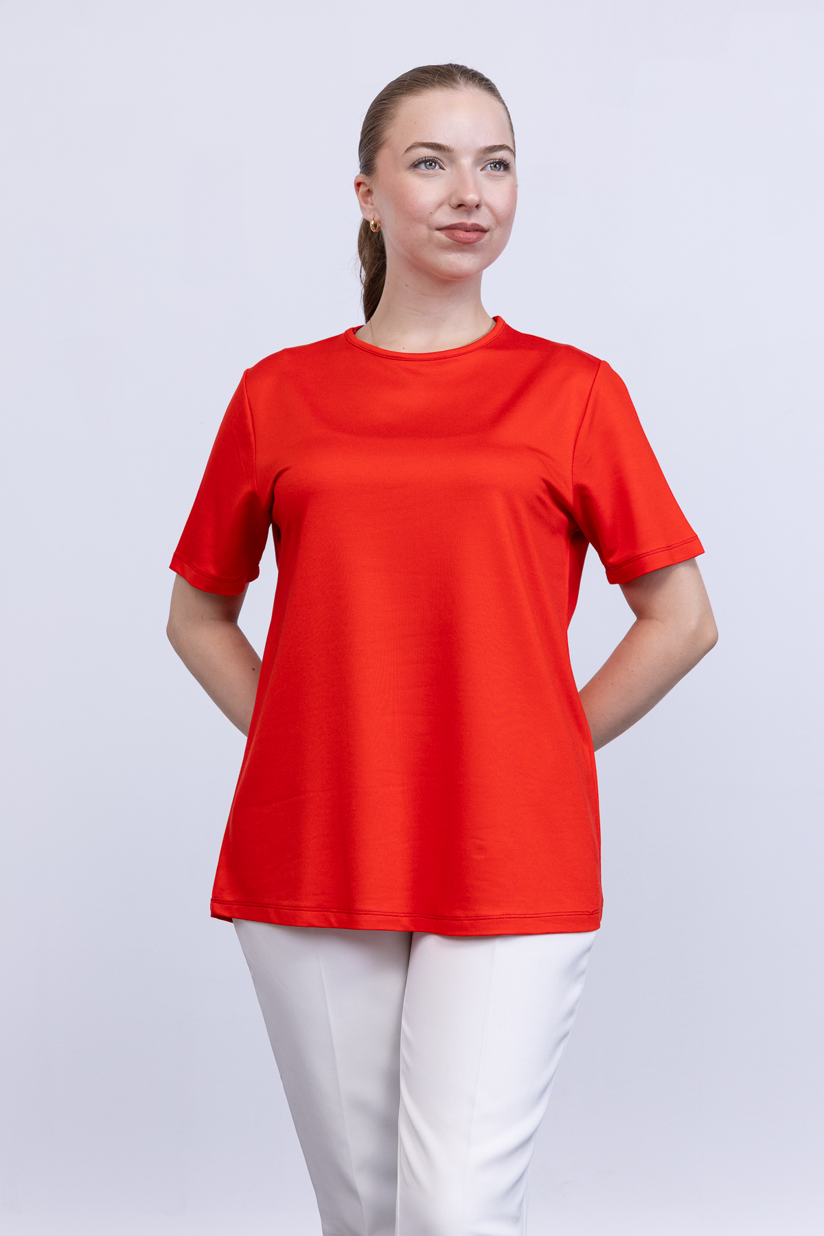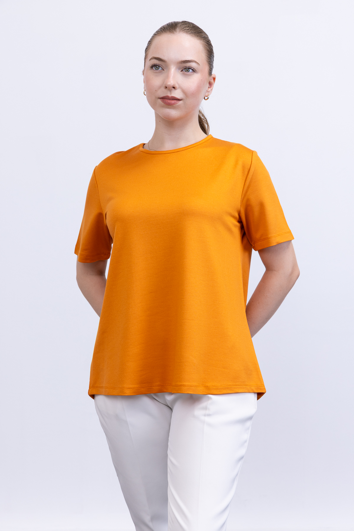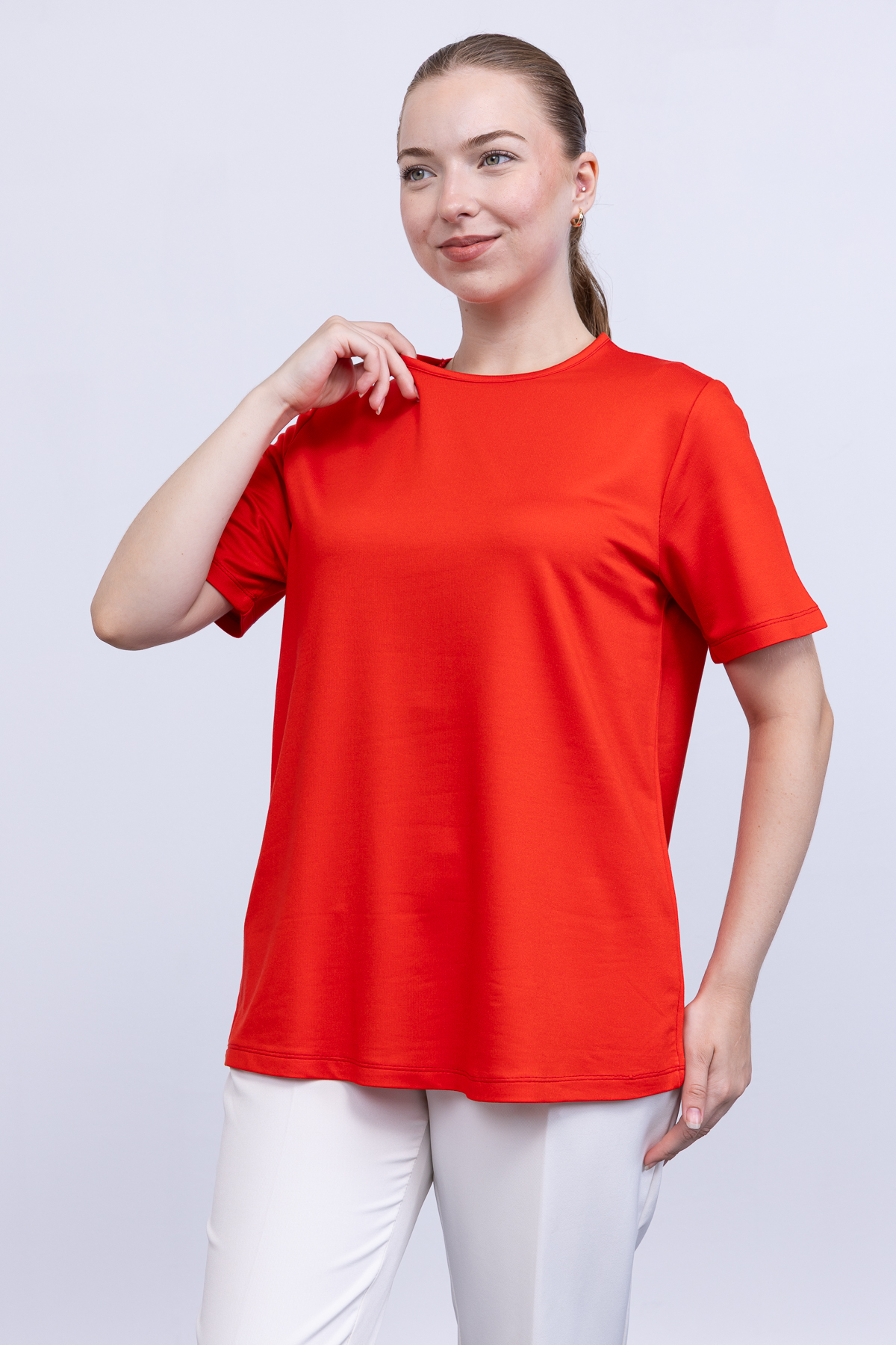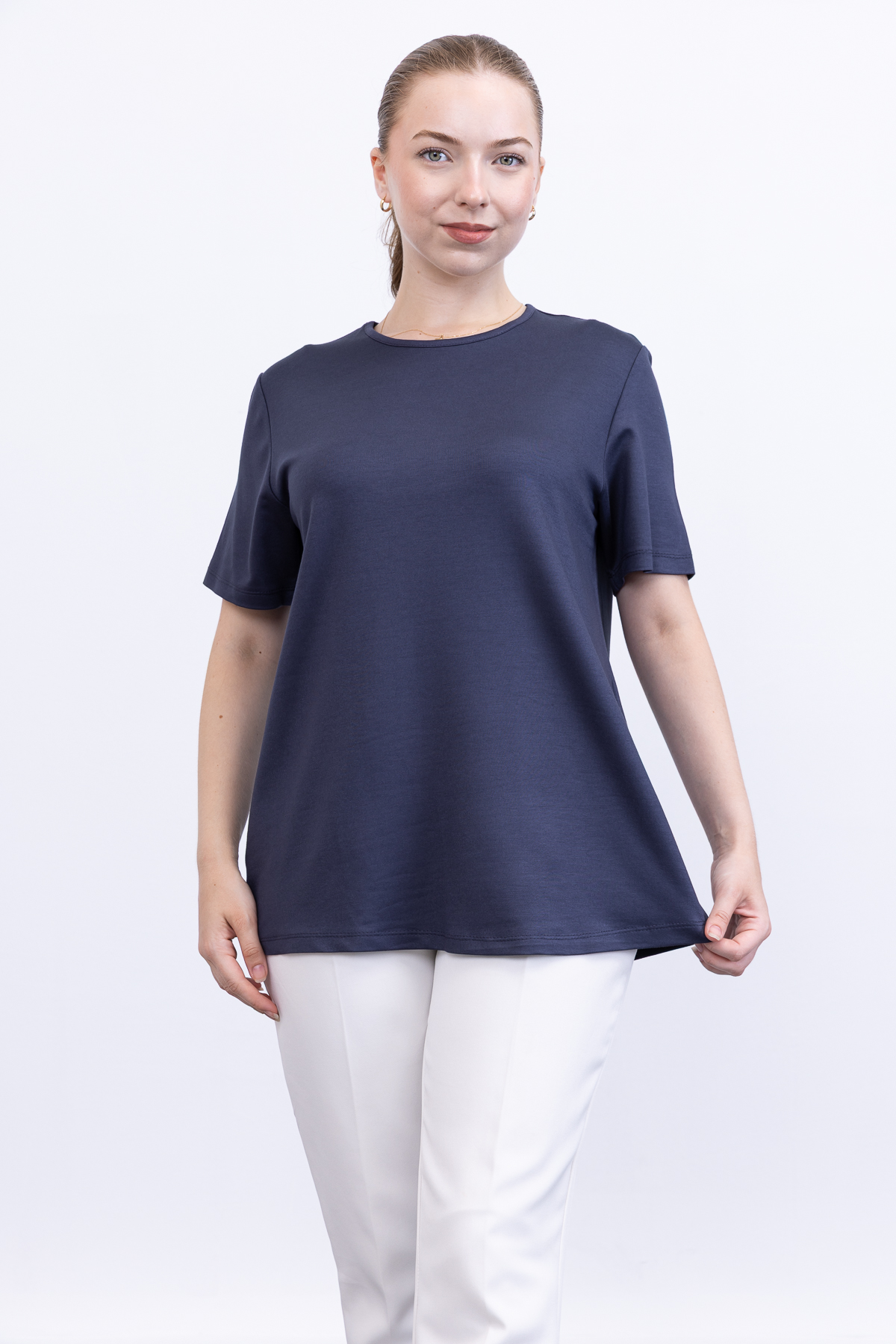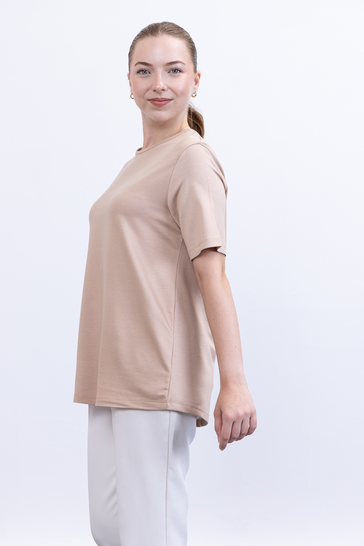 Kristal Likralı Kısa Kollu Bisiklet Yaka Rahat Kalıp Penye T-shirt,Bluz,İçlik