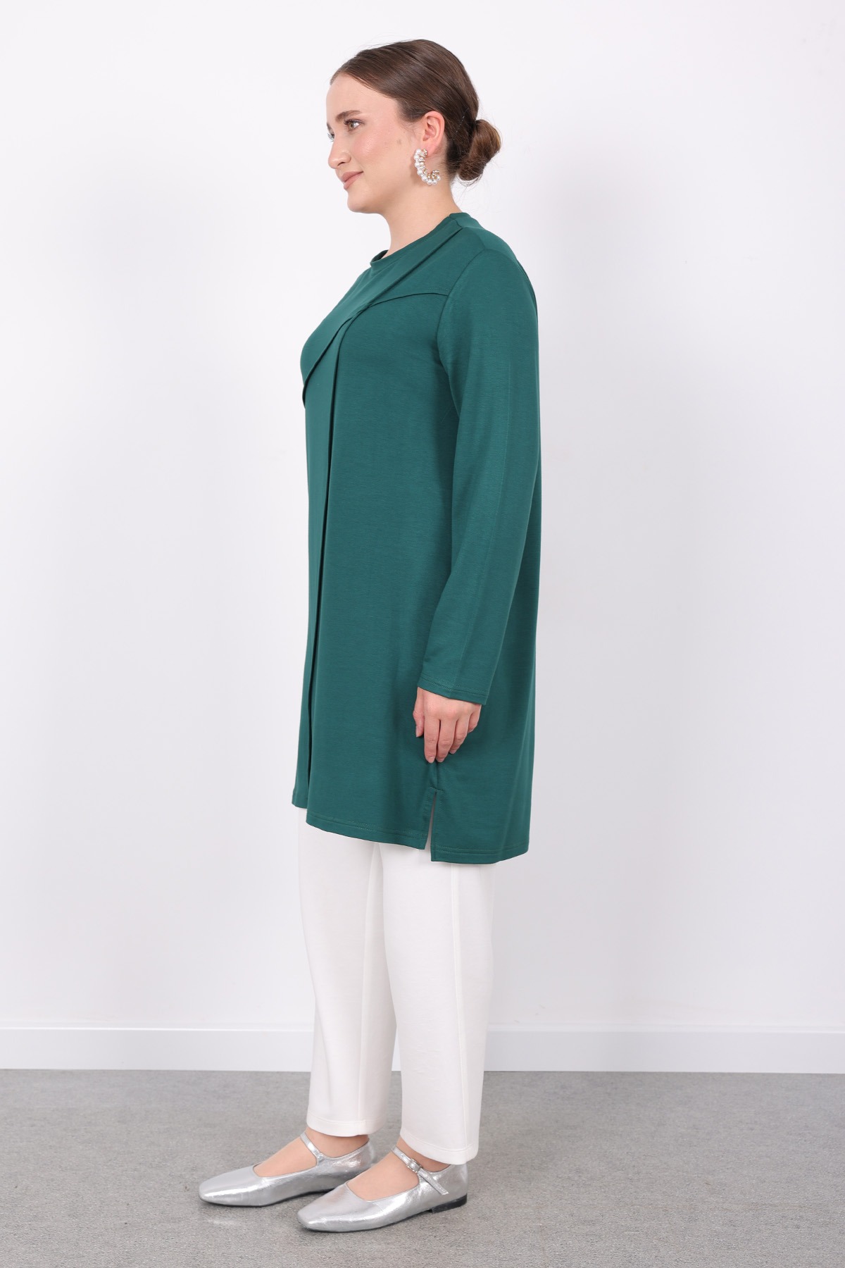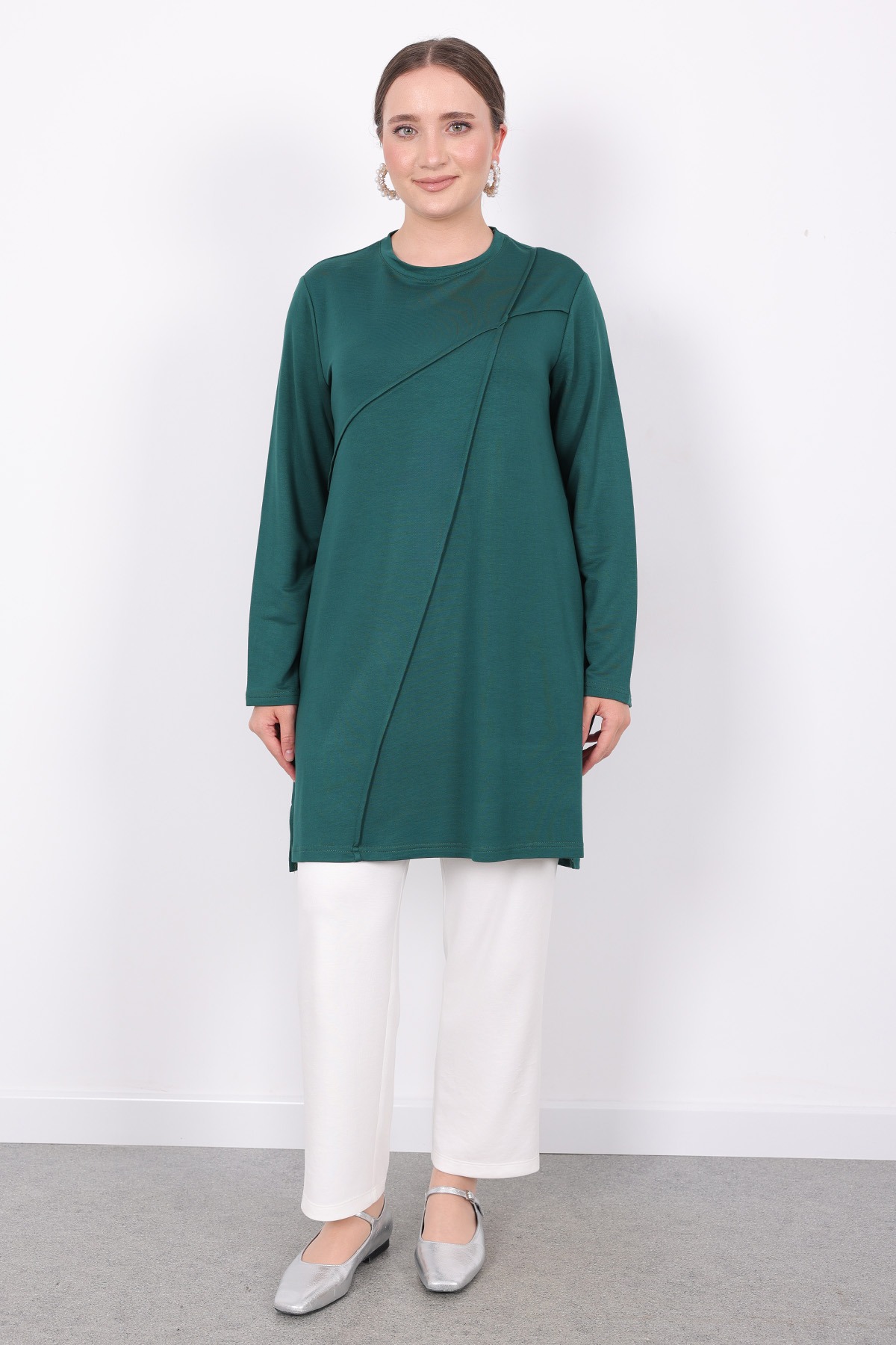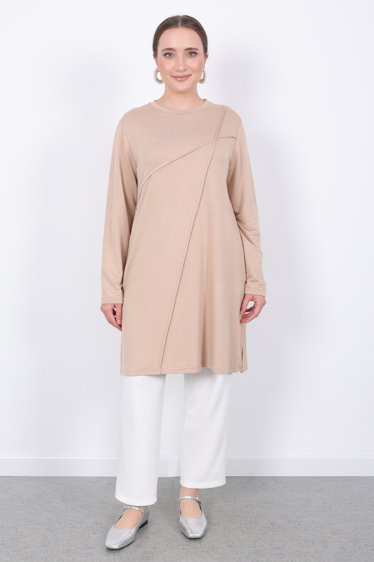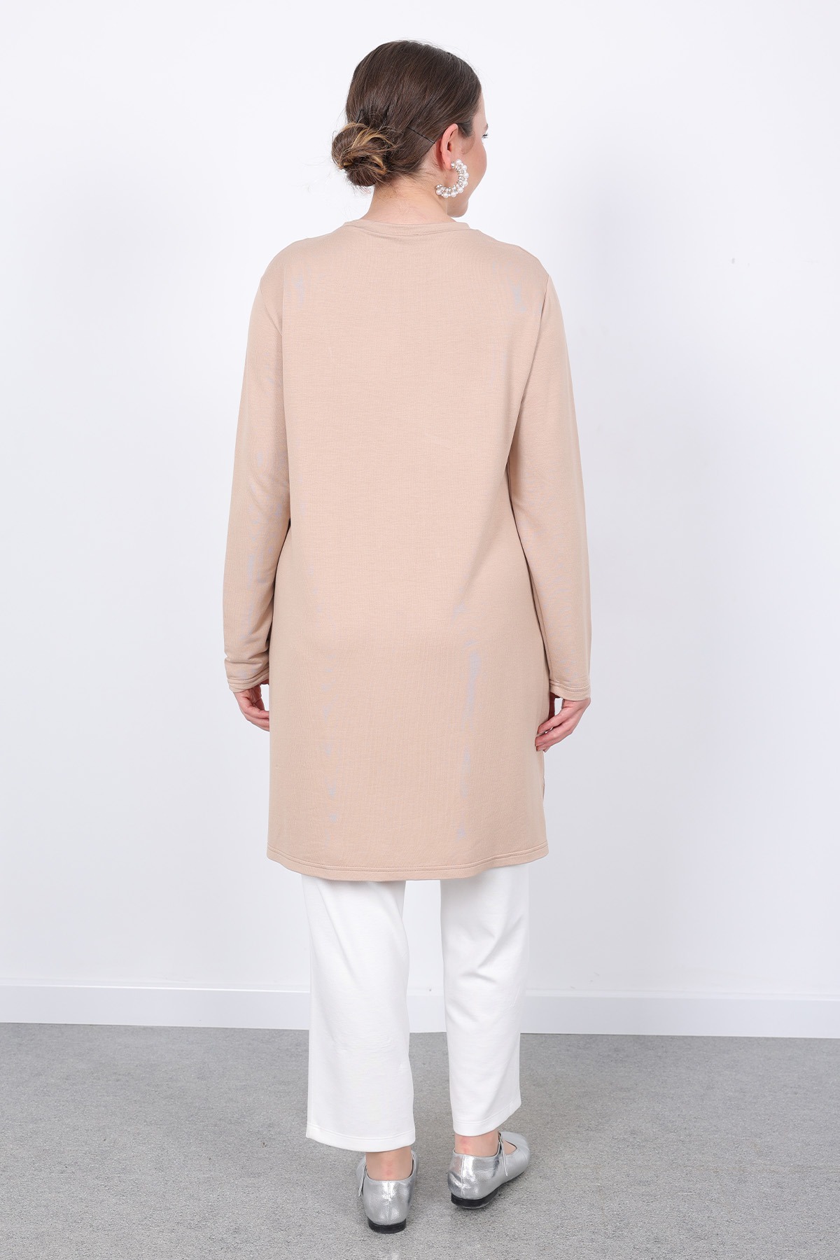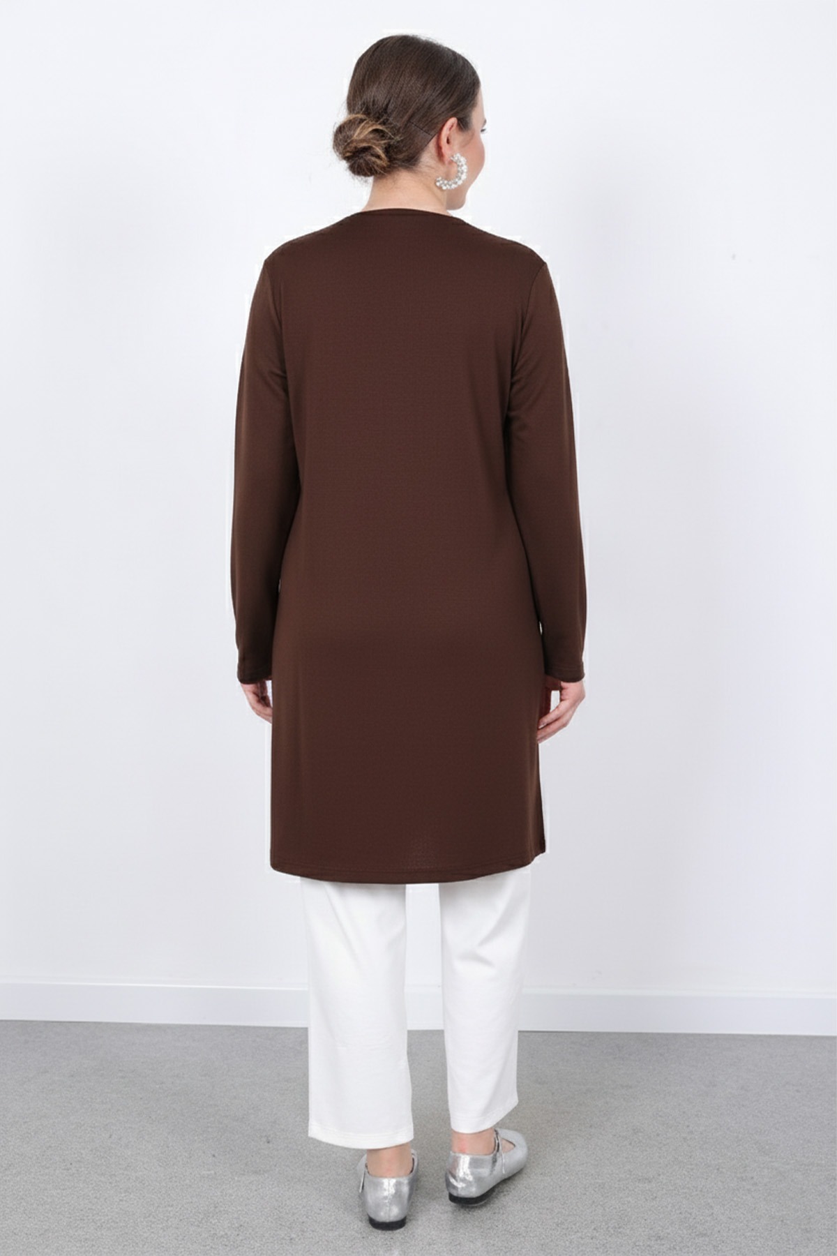 – Günlük kullanım için ideal, rahat ve şık tasarımıyla dikkat çeken tunik.; – Dokuma kumaştan üretilmiş olup, dayanıklılığı ve konforu bir arada sunar.; – Bisiklet yakası sayesinde modern ve zarif bir görünüm sağlar.; – Kristal kumaşı ile hafif ve nefes alabilen yapısı, yaz ayları için mükemmeldir.; – Tesettür giyim koleksiyonuna özel olarak tasarlanmıştır; hem günlük hem de özel günlerde tercih edilebilir.; – Cepsiz tasarımı ile minimalist bir stil sunarken, nervürlü detaylarıyla farklılık kazandırır.; – Casual ortamlarda rahatlıkla kullanılabilir; işlevsellik ve estetiği bir arada barındırır.; – Uzun kol boyu sayesinde mevsimsel geçişlerde ideal koruma sağlar.; – Düz deseniyle kolayca kombinlenebilir ve zamansız bir parça haline gelir.; – Sürdürülebilirlik detayına önem verilmemiştir ancak bu durum ürünün kalitesinden ödün verilmediğini göstermektedir.; – Her sezon rahatlıkla tercih edebileceğiniz orta kalınlığa sahiptir.; – Pamuk polyester karışımından oluşan materyali cildinize nazik dokunuşlar sunarken uzun süreli kullanım vaad eder.; – 46 bedeniyle geniş kalıp seçeneği sunarak her vücut tipine uyum sağlar.; – Düz kesimi sayesinde vücut hatlarınıza uyumlu bir şekilde otururken rahat hareket etme imkanı tanır.; – 30°C’de hassas yıkama önerisiyle bakımı kolaydır; elde ya da kısa programda yıkanabilir.; – İç göstermeyen yapısıyla güvenle giyilebilir; mahremiyetinizi korurken şıklığından ödün vermezsiniz.; – Uzun kollu tasarım soğuk havalarda ekstra sıcaklık sağlarken stilinizi tamamlar.; – Kadın ve kız kullanıcılar için uygundur; herkes tarafından rahatlıkla tercih edilebilir.; – Tunik siluetiyle hem spor hem de resmi kombinlerde mükemmel uyum sergiler.; – Düz dokuma tipiyle sadeliği ön plana çıkaran bu tunik, gardrobunuzun vazgeçilmez parçası olacak.