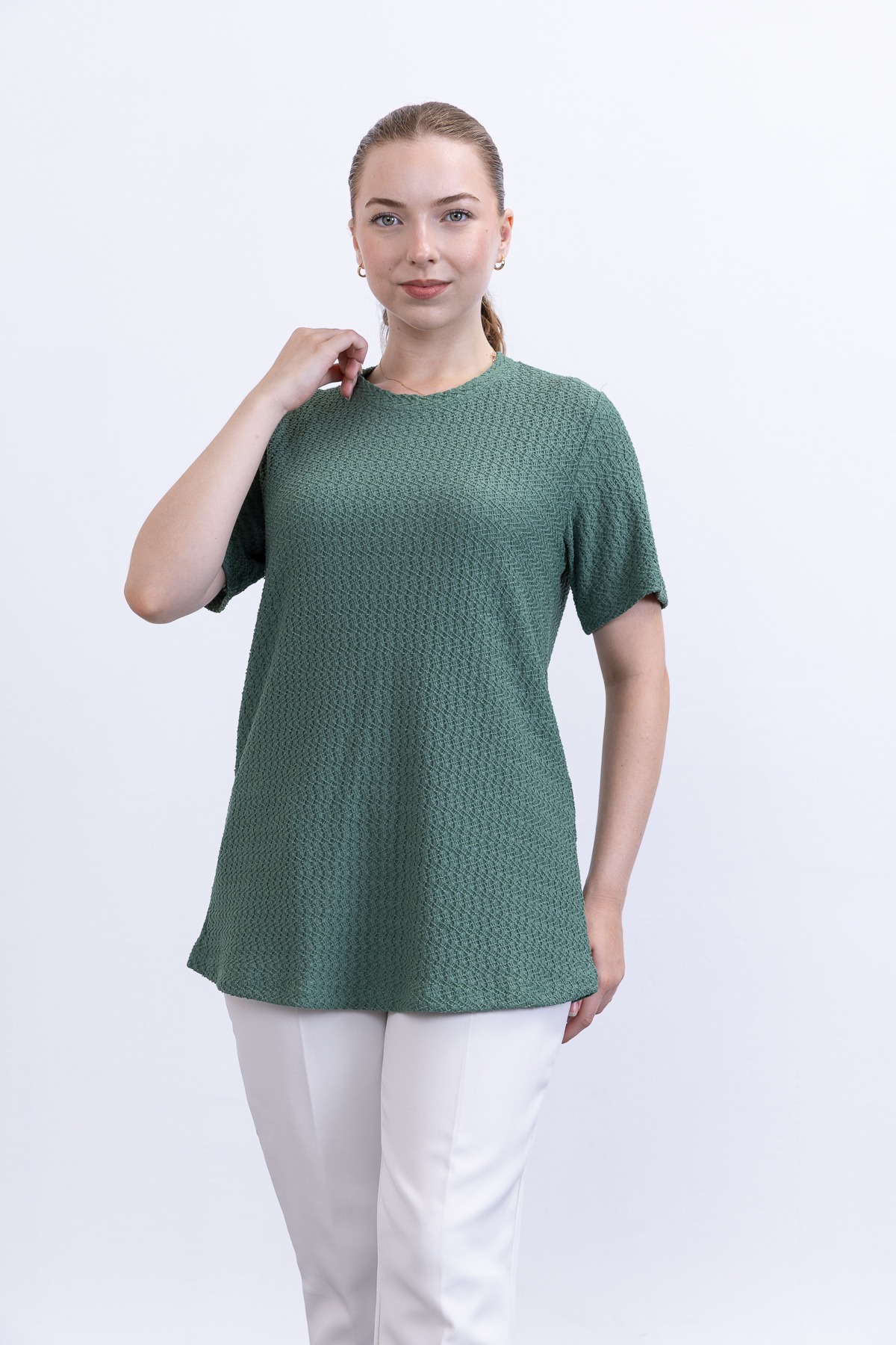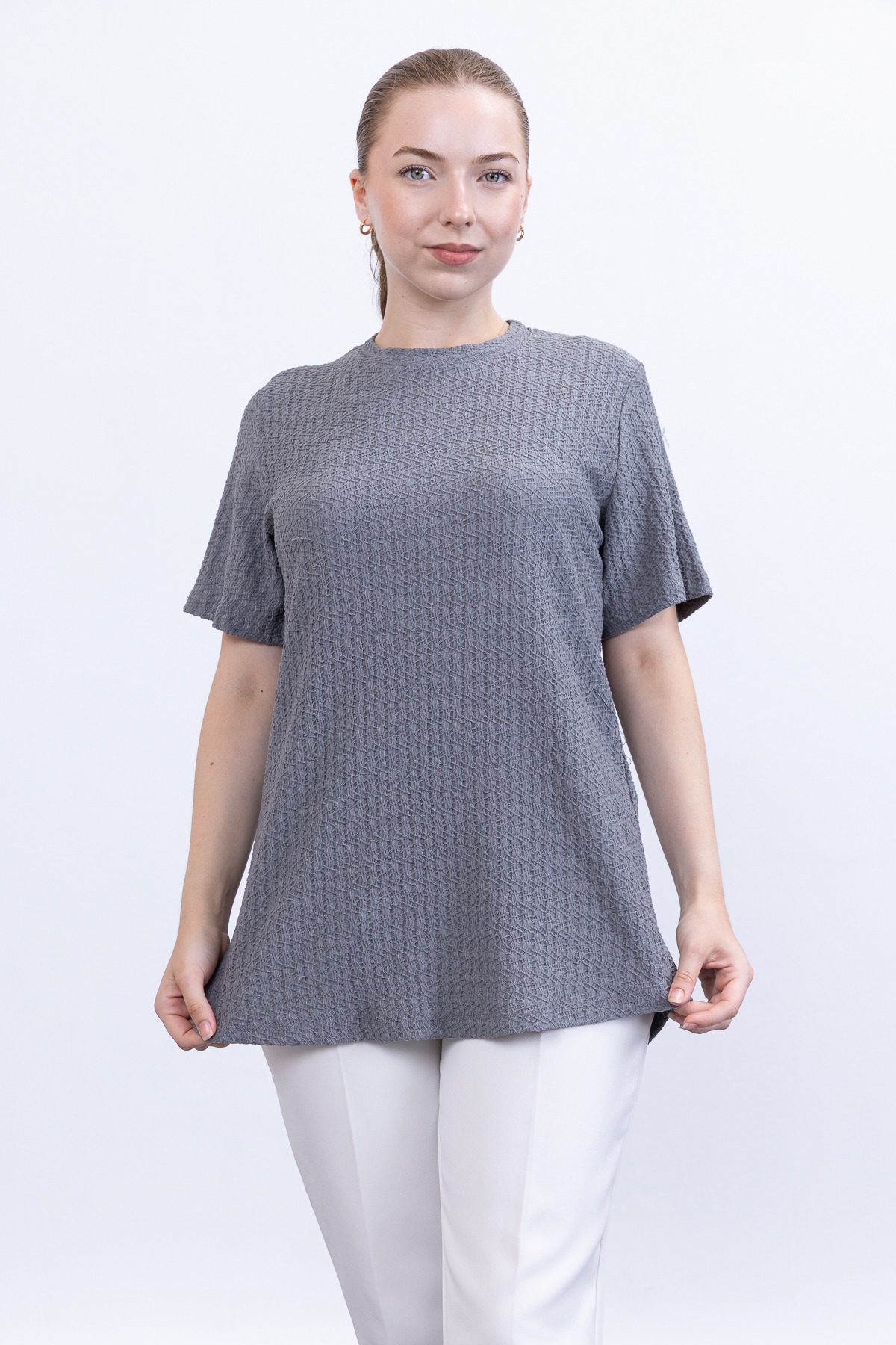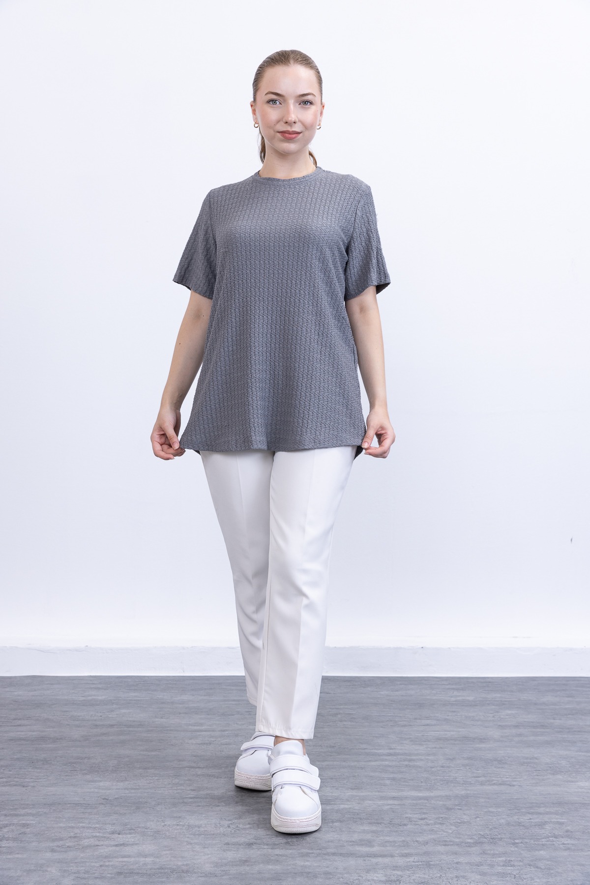 Yazlık Günlük Rahat Kalıp Kısa Kollu Bürümcük Bluz Tişört