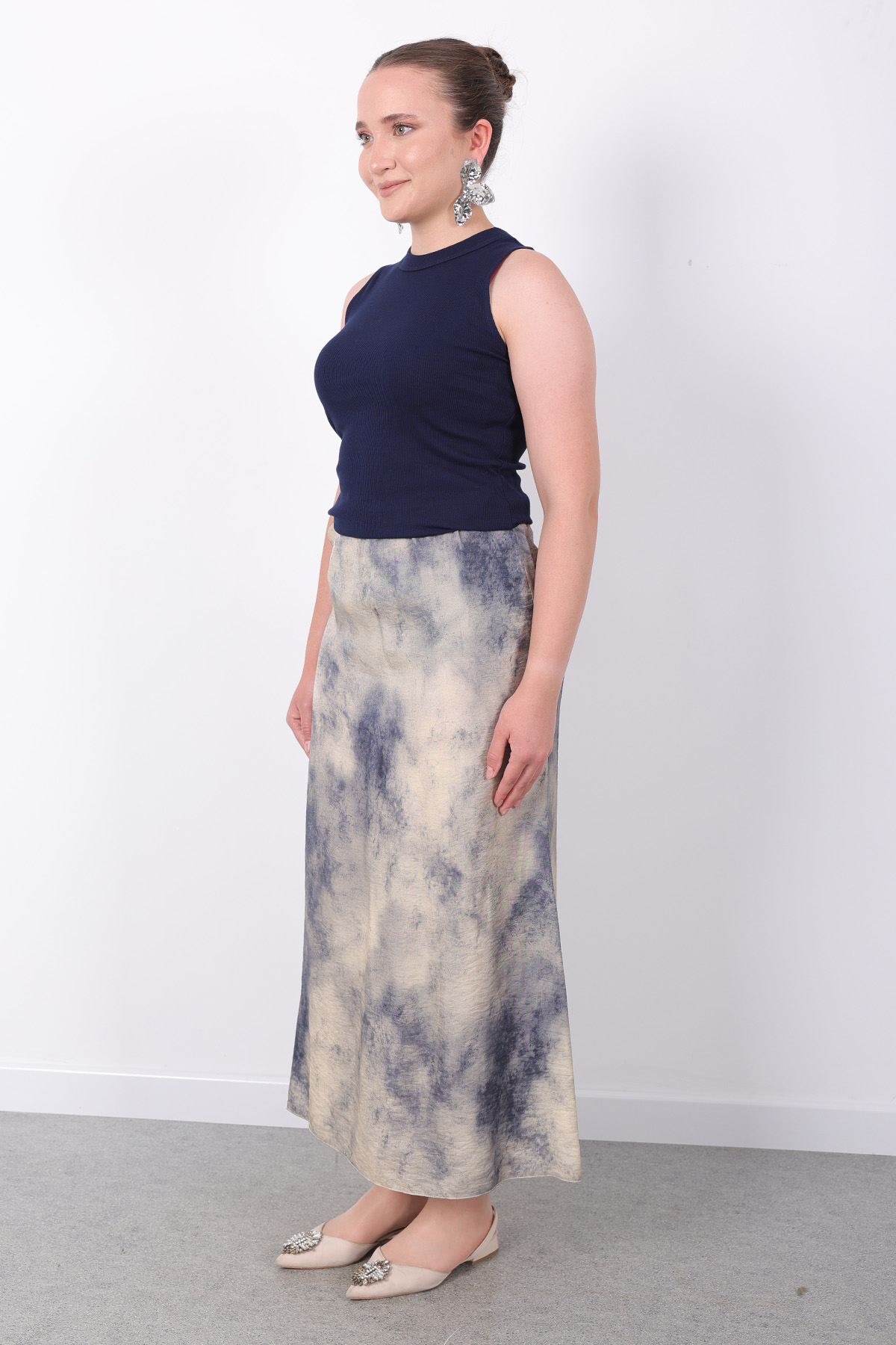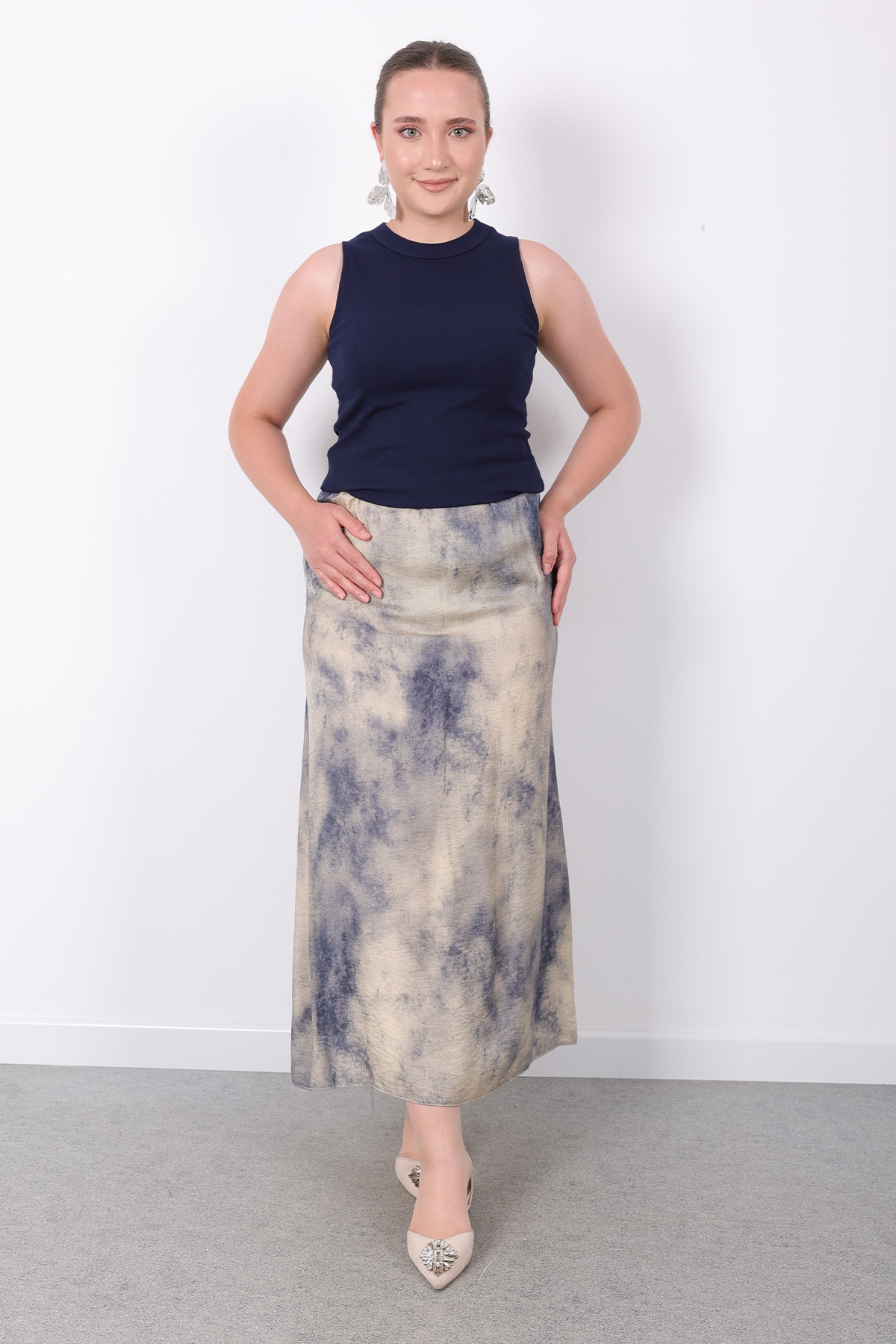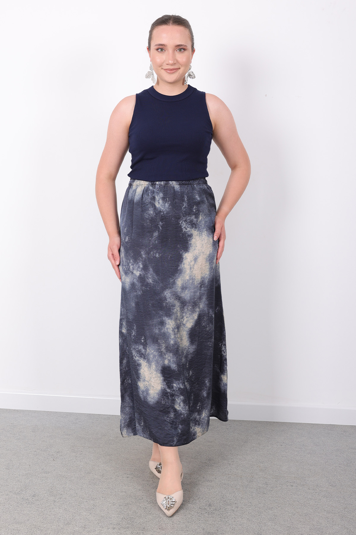 Yazlık Kadın Standart Beden Lastikli Viscon Parlak Kumaş Bilek Boy Etek