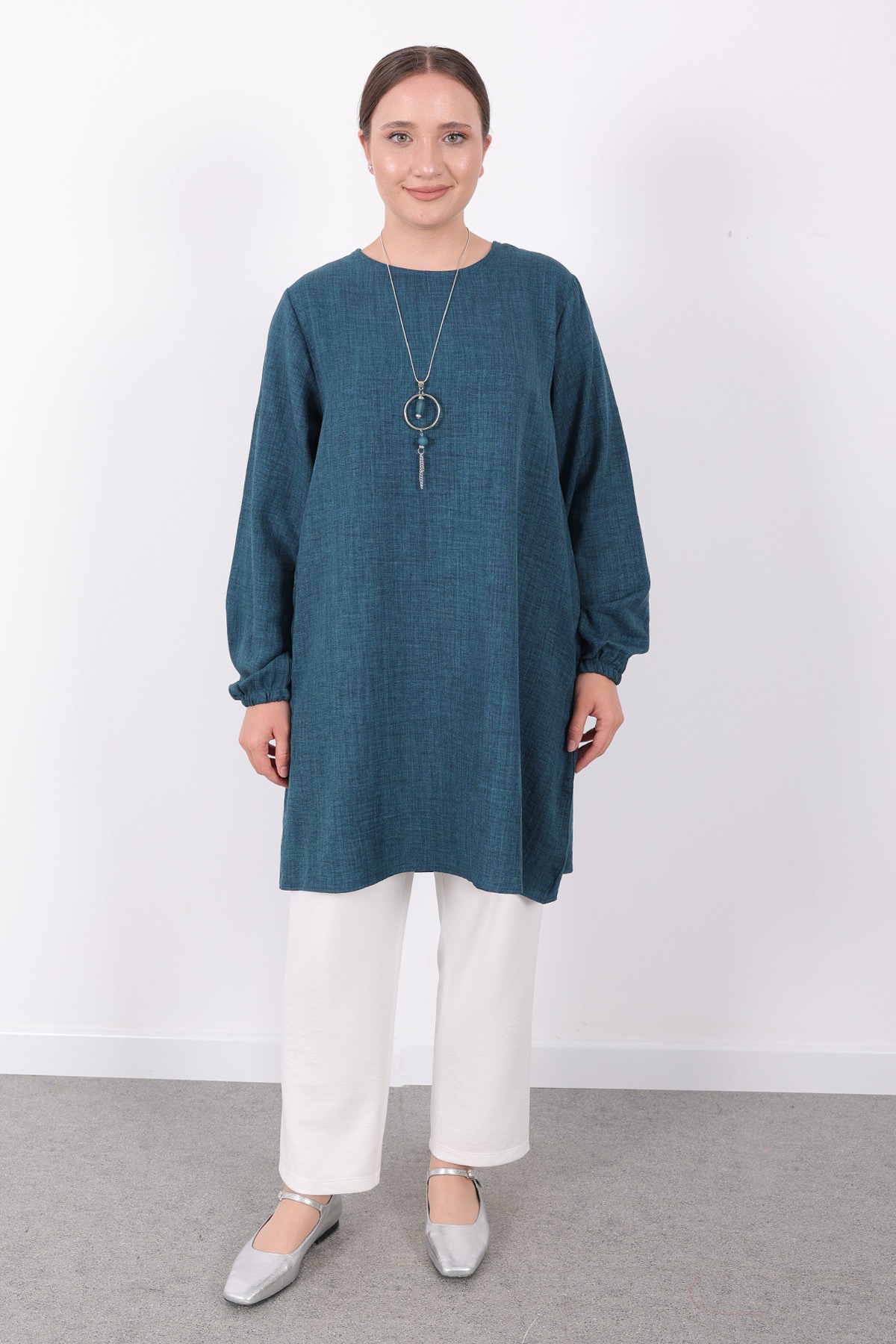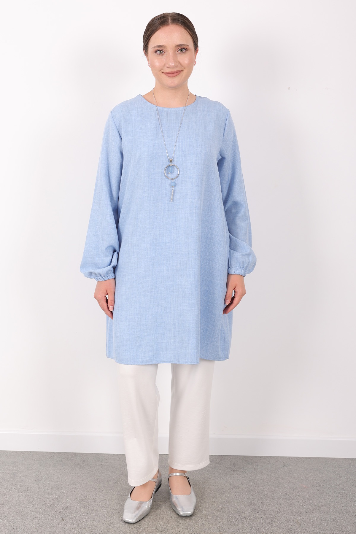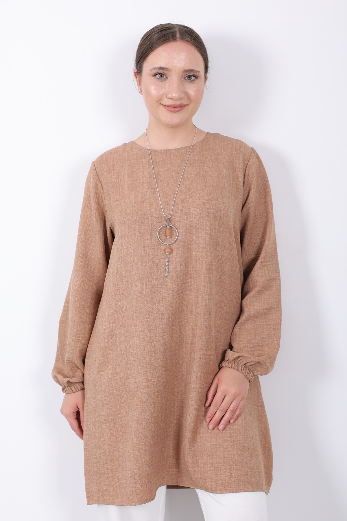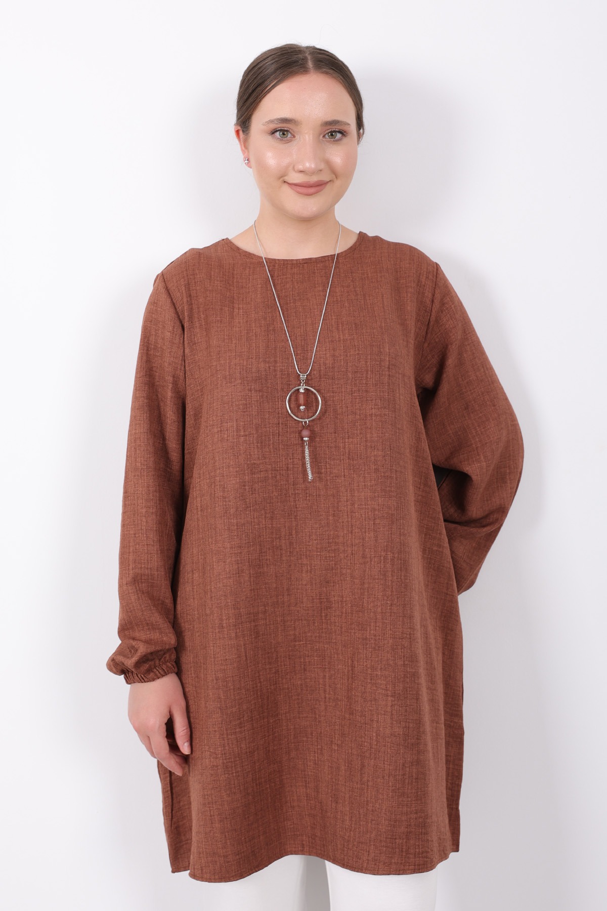 Yazlık Kadın Tunik Günlük İnce Sofia Keten Kolyeli Tunik