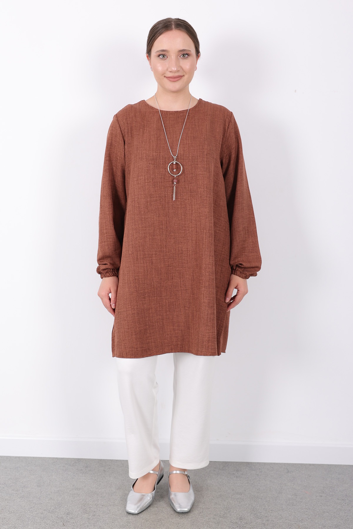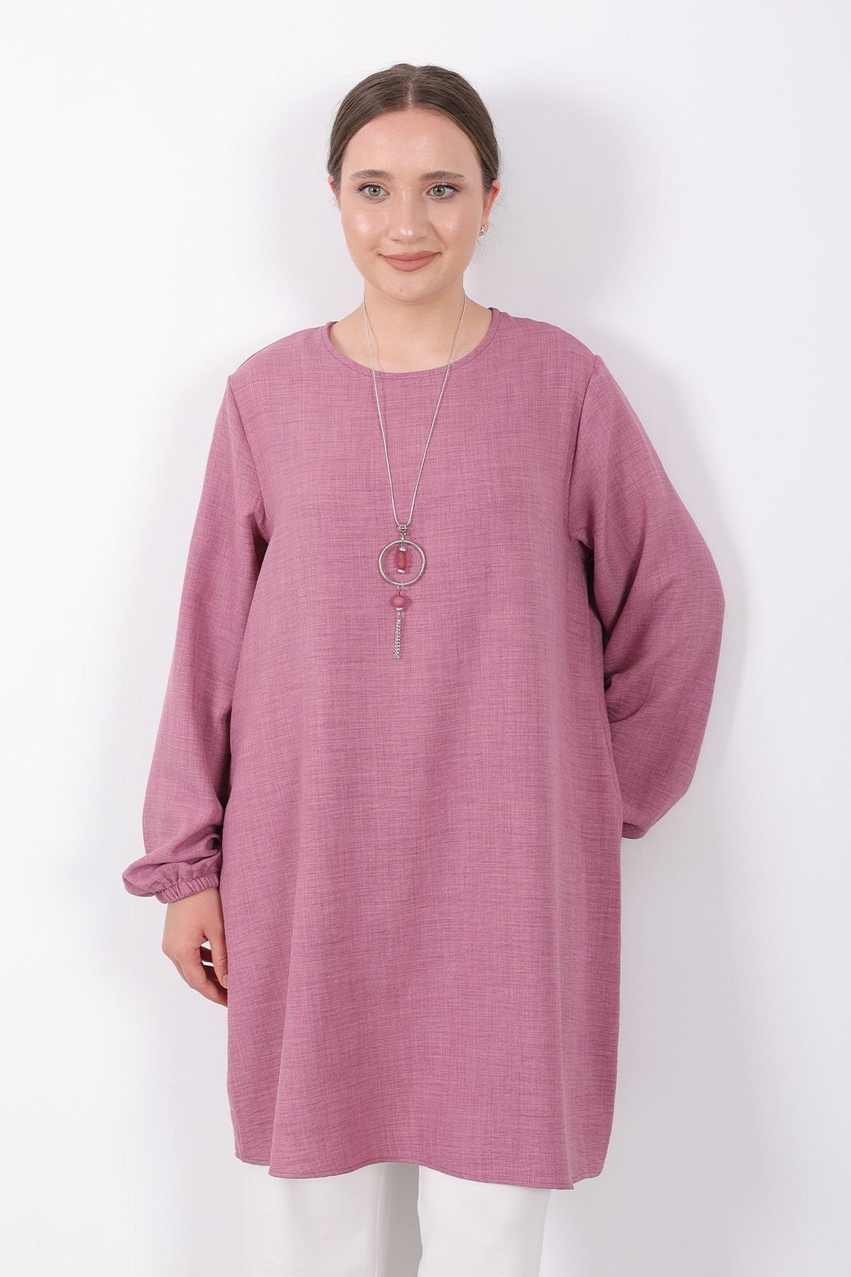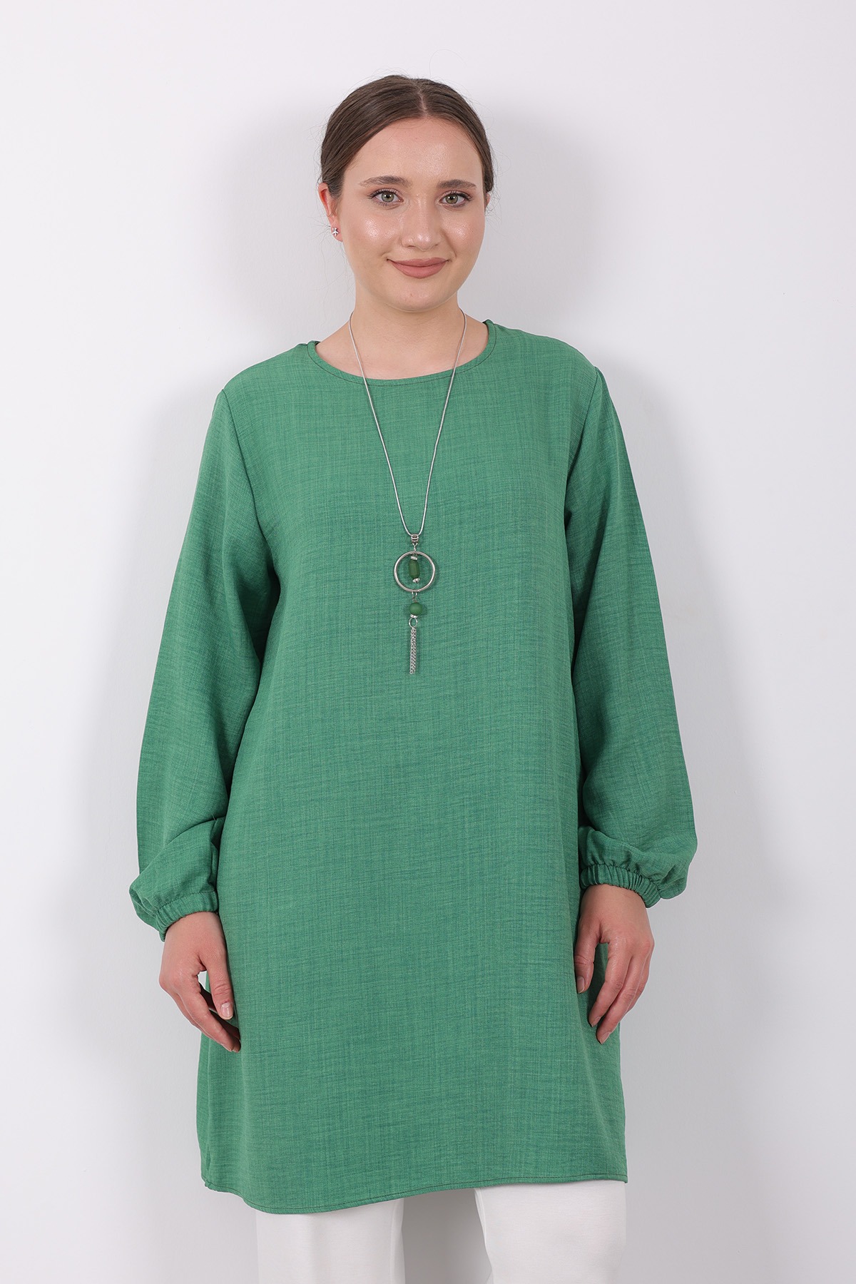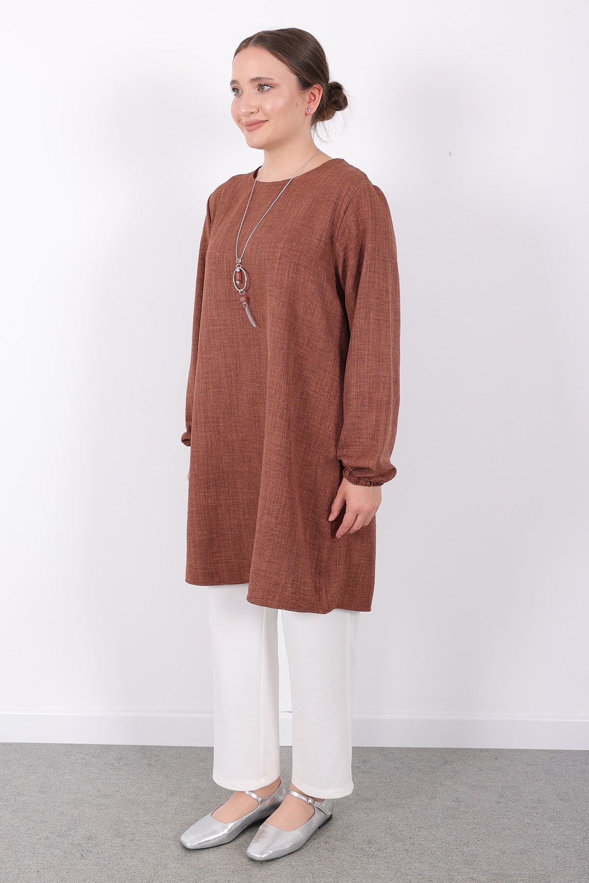 Yazlık Kadın Tunik Günlük İnce Sofia Keten Kolyeli Tunik