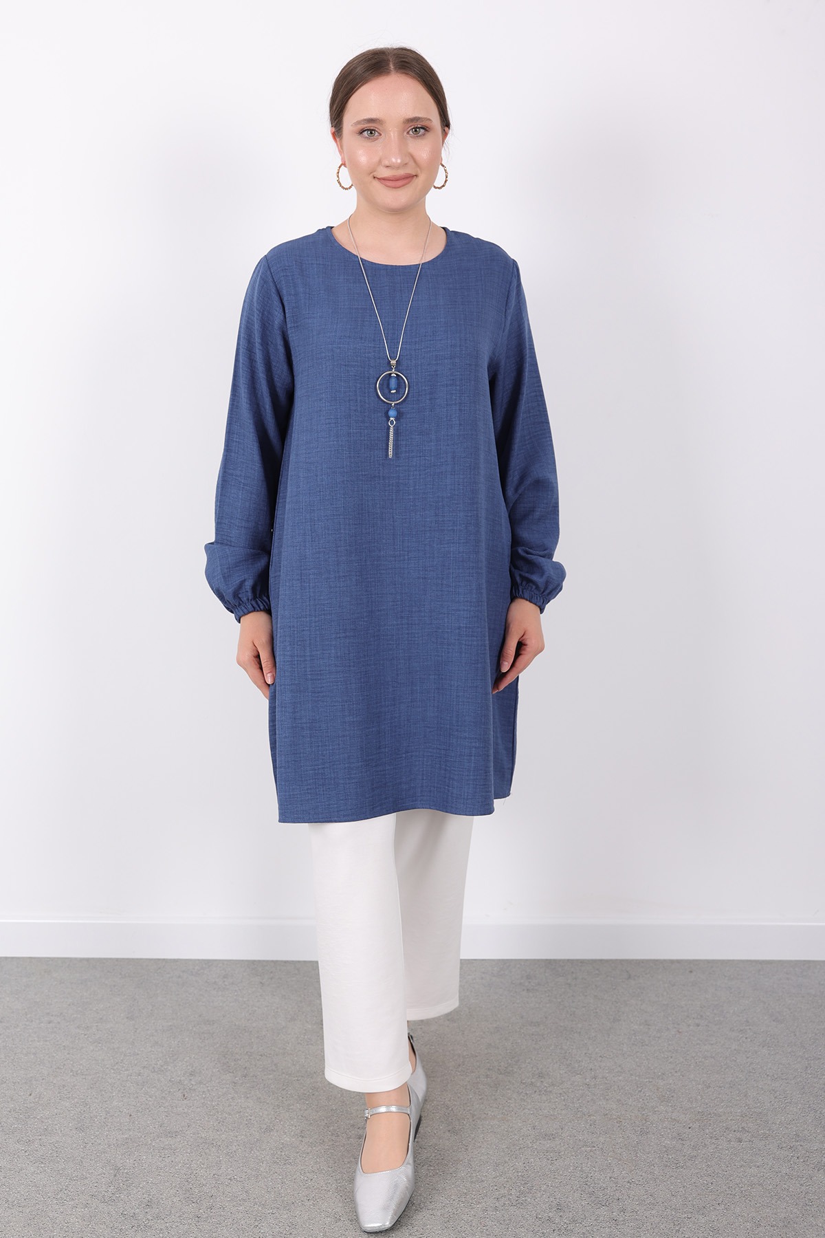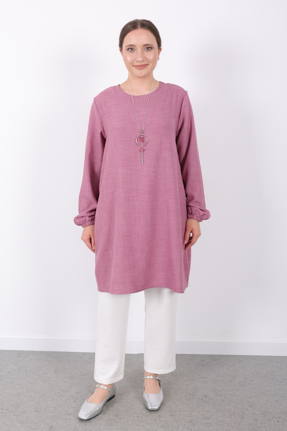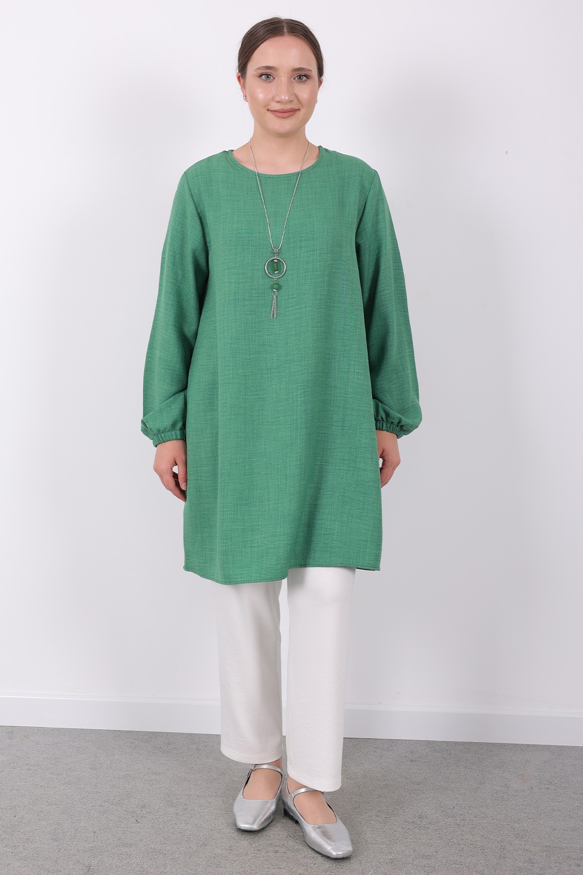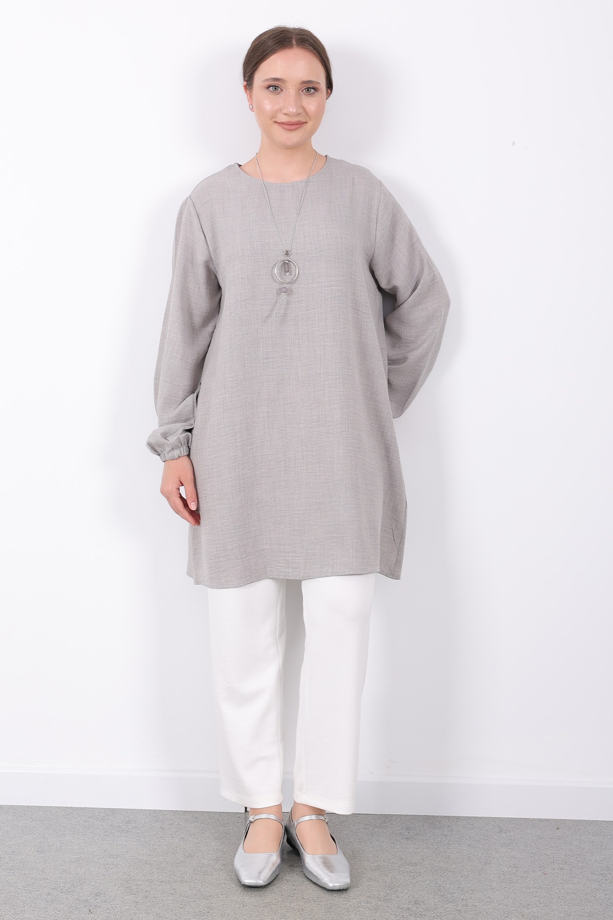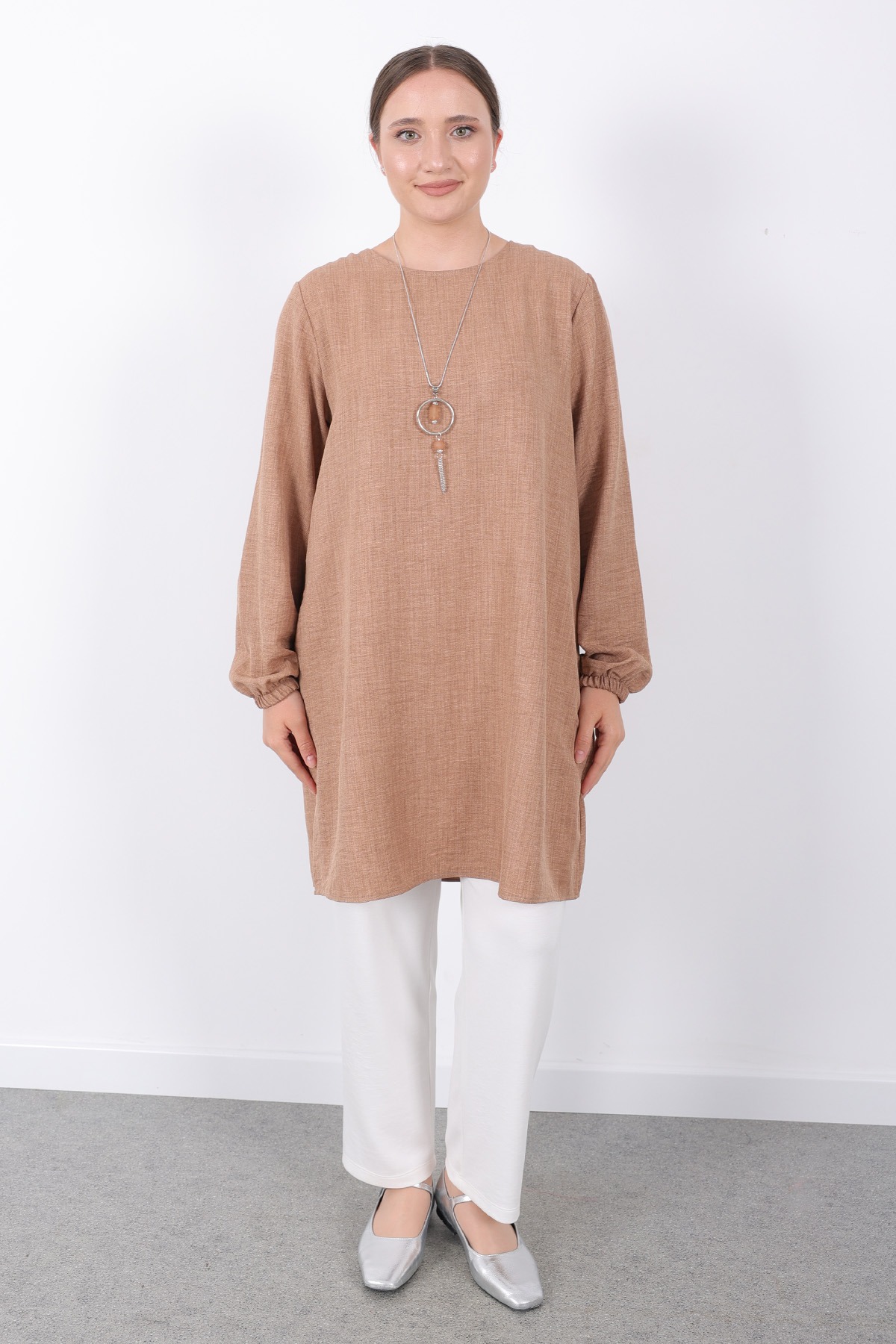 Yazlık Kadın Tunik Günlük İnce Sofia Keten Kolyeli Tunik