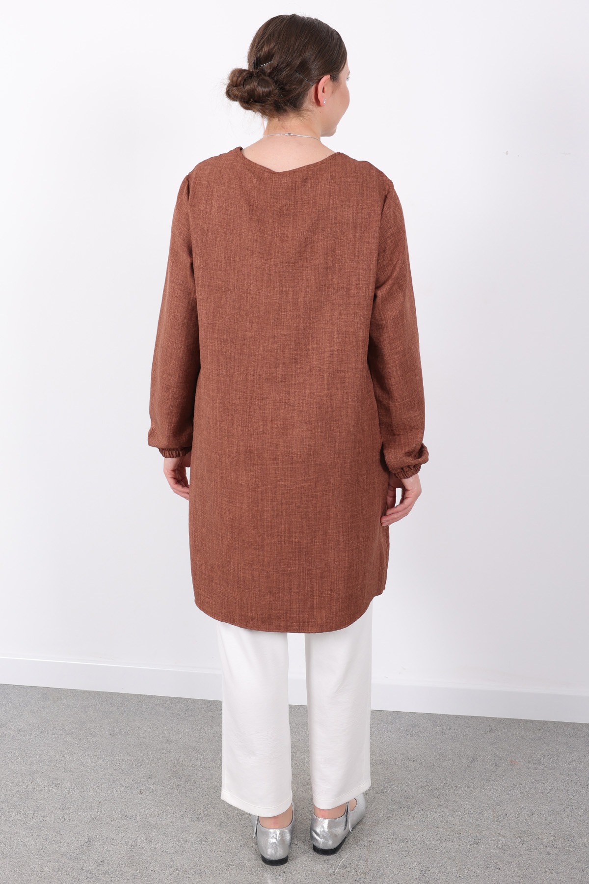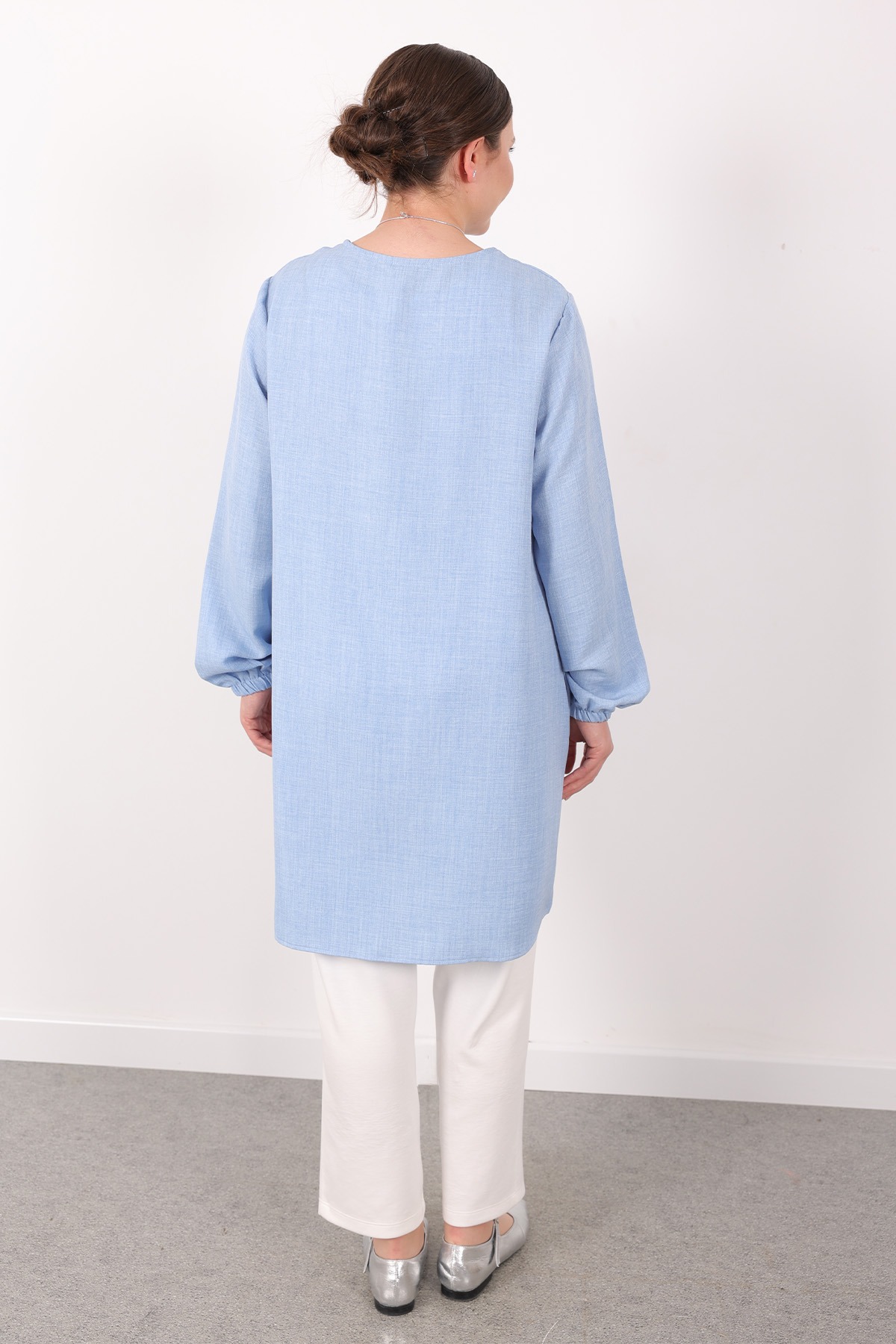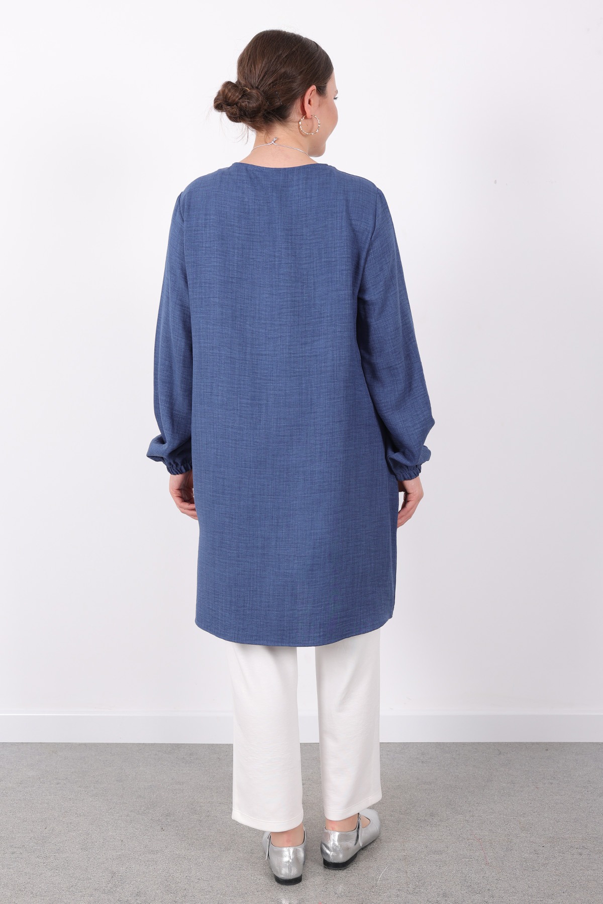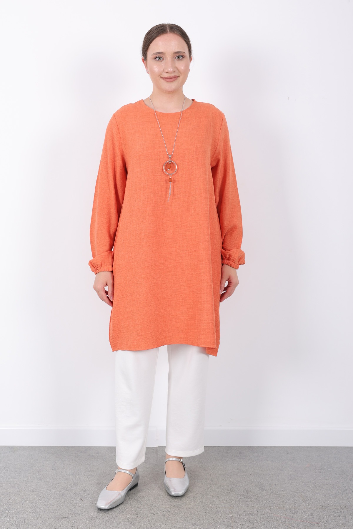 Yazlık Kadın Tunik Günlük İnce Sofia Keten Kolyeli Tunik