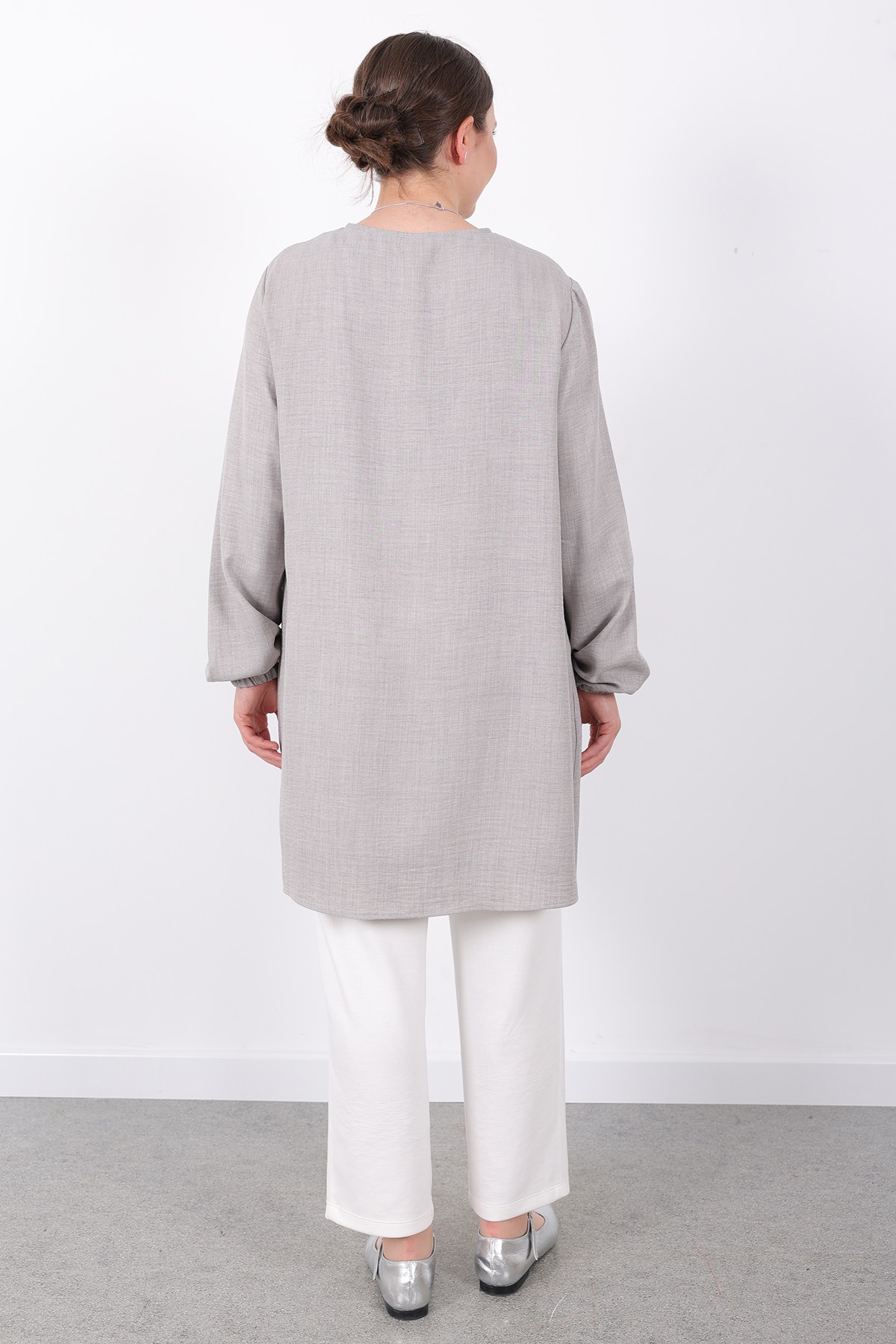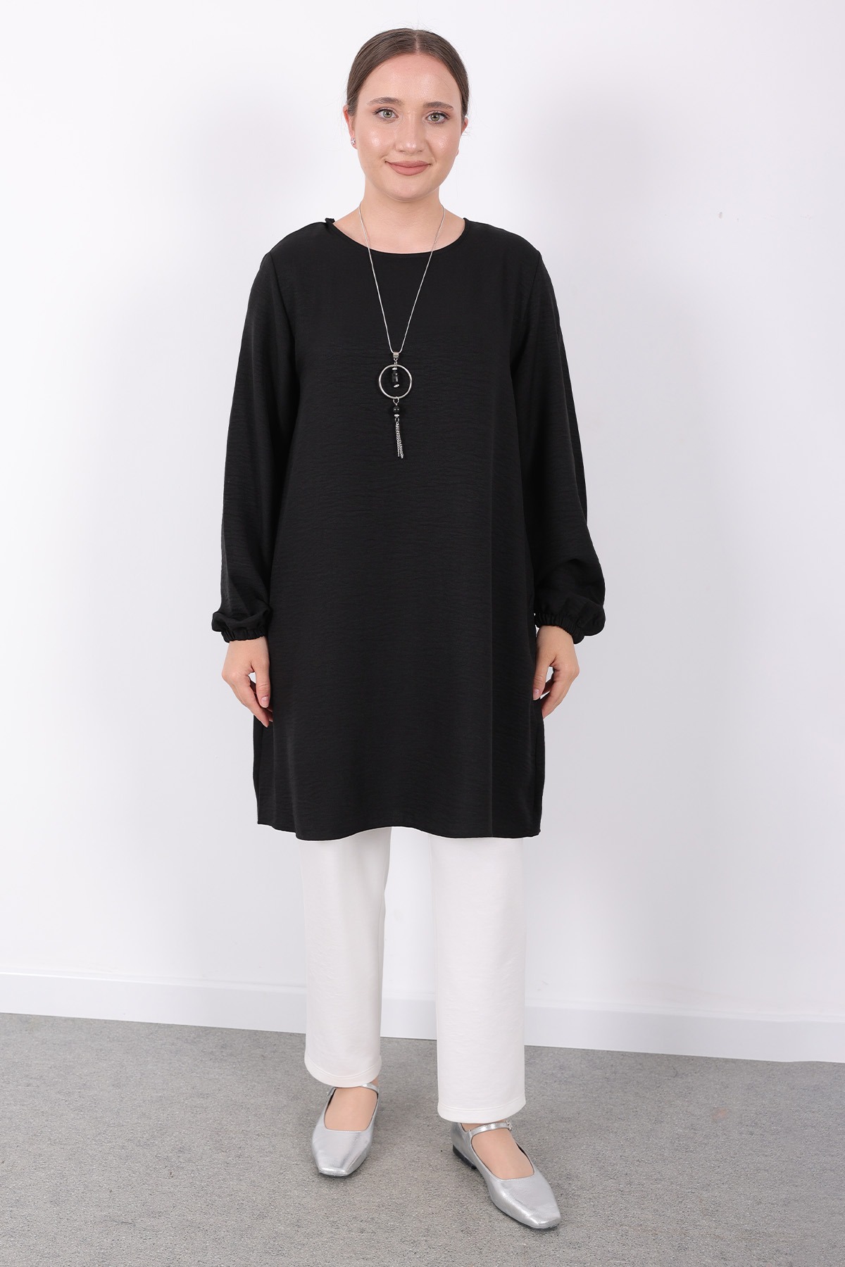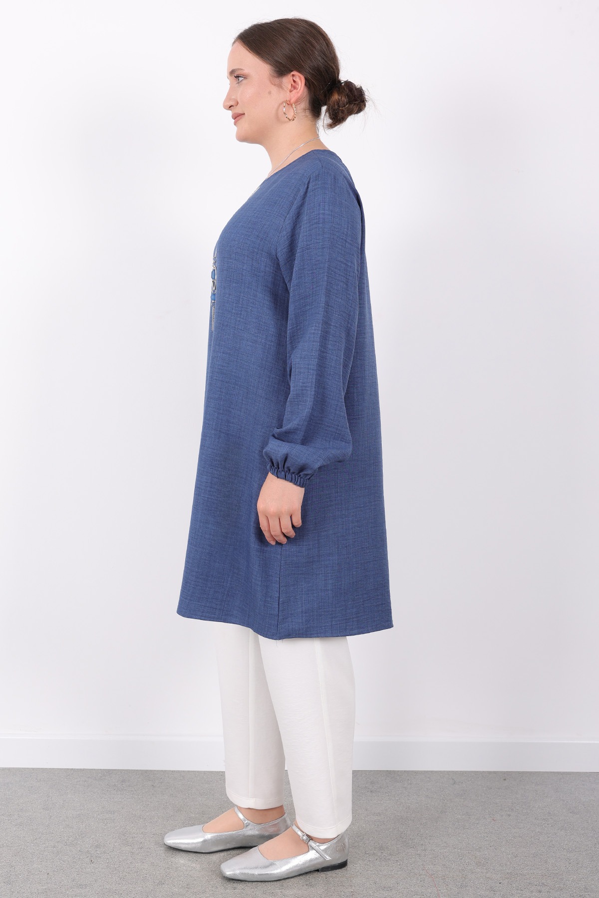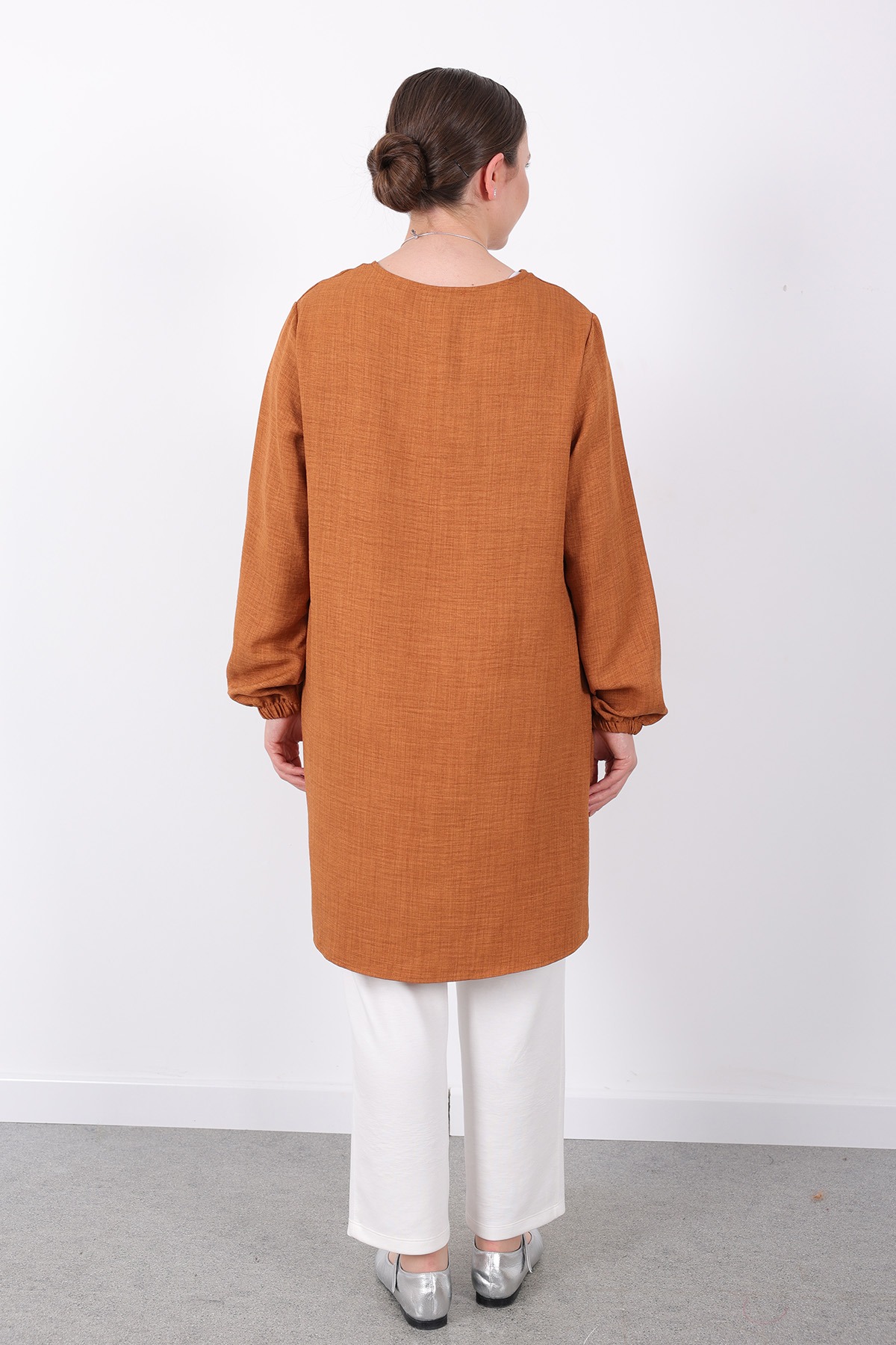 Yazlık Kadın Tunik Günlük İnce Sofia Keten Kolyeli Tunik