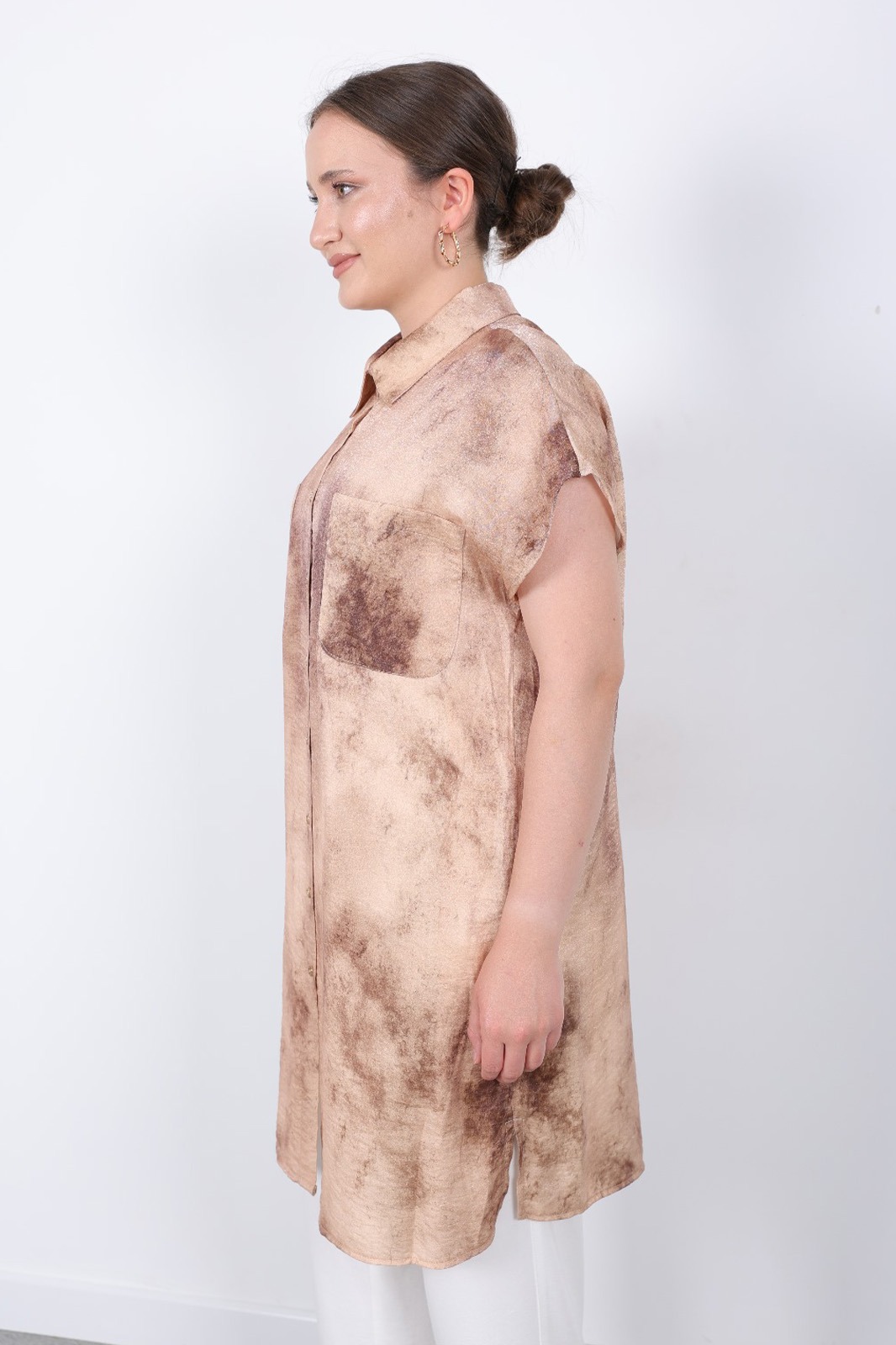 yazlık Şık cepli kolsuz düğmeli parlak kumaş gömlek elbise tunik yelekYazlık Şık Cepli Kolsuz Düğmeli Parlak Kumaş Gömlek Elbise Tunik Yelek